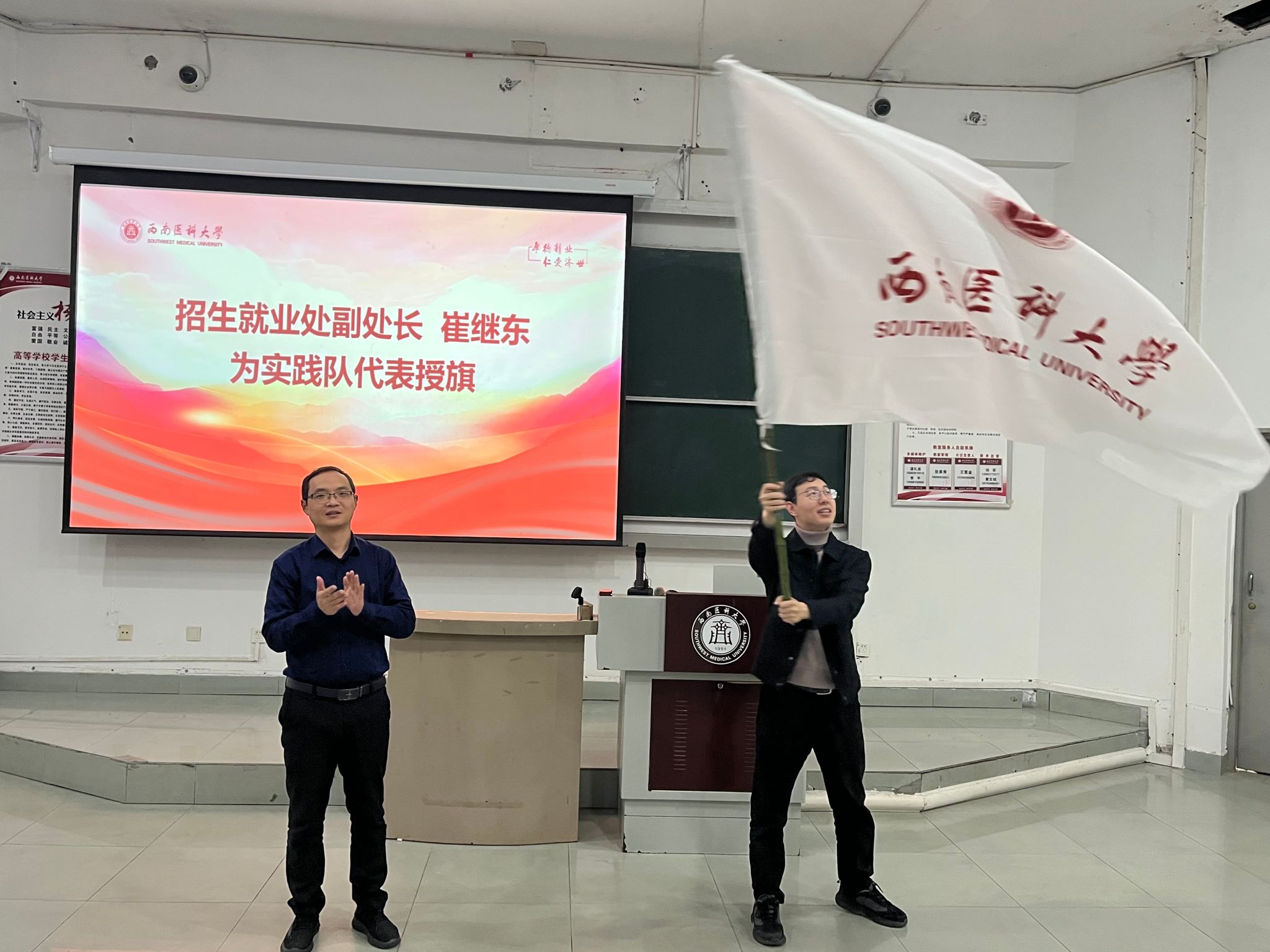 1214日,kaiyun官网2024年“回访母校 筑梦医大”寒假社会实践活动启动仪式在鸿文楼101教室举行。招生就业处副处长崔继东、招生办公室主任罗俊、二级院系负责教师、各社会实践队队长参加启动仪式。