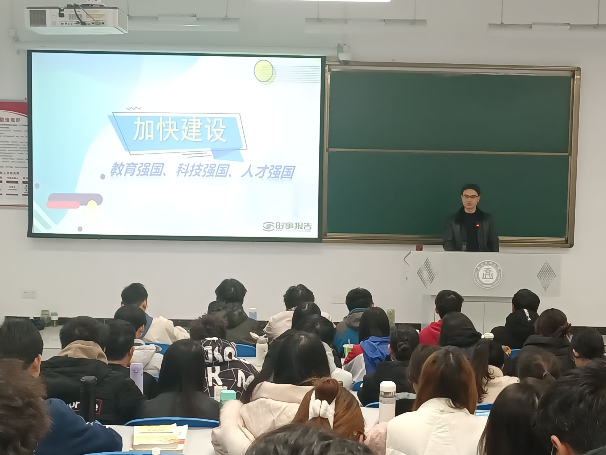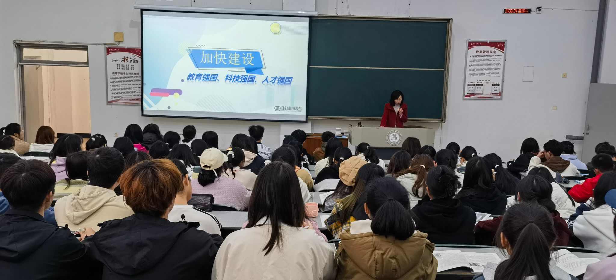 为深入学习贯彻习近平新时代中国特色社会主义思想,全面贯彻落实党的二十大精神,11月6日至12月14日,学校校领导走上思政课讲台,面向不同专业、年级的同学进行专题讲授,为同学们带来了一堂堂富有深具思想性、理论性和亲和力的“形势与政策”课,引导同学们增强“四个意识”,坚定“四个自信”、做到“两个维护”,踔厉奋发,努力成长为适应国家未来发展需要、堪当民族复兴大任的时代新人。