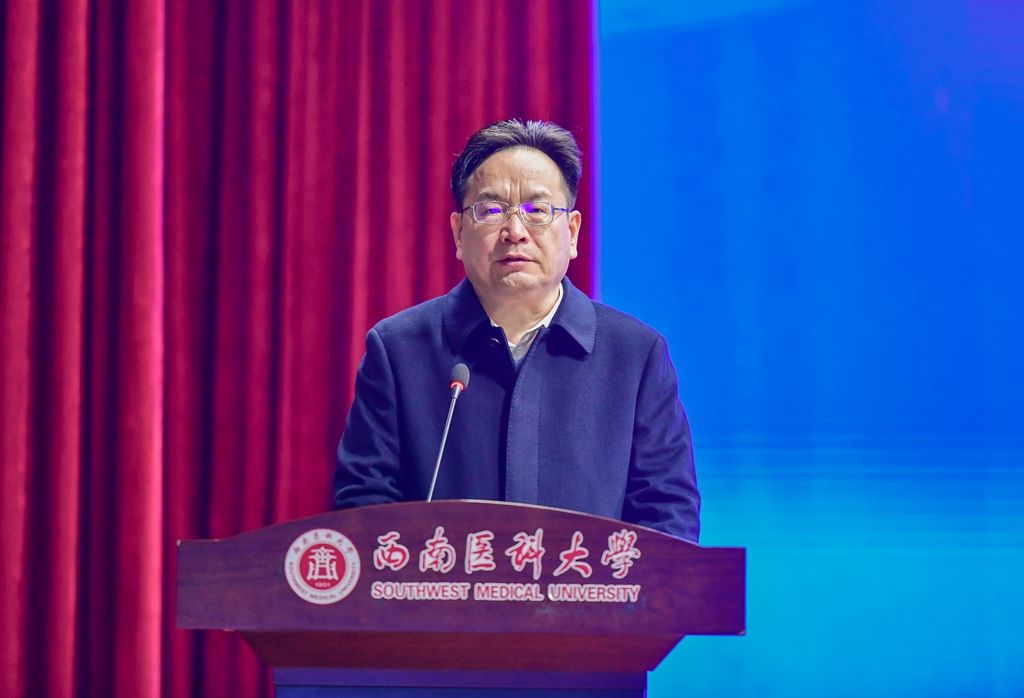 泸州市人民政府副市长罗素平,黄河流域医学院校联盟理事长单位、山东第一医科大学副校长马鲁豫,kaiyun官方网站入口党委副书记、校长张春祥,甘肃医学院校长王坤,滨州医学院校长黄飞,内蒙古医科大学副校长鲁海文,西安医学院副校长李雪萍,陕西中医药大学副校长杨景锋,长治医学院副校长来丽娜,济宁医学院副校长王慧云,成都大学副校长刘娅,川北医学院副校长张波,成都医学院副校长代敏,西安医学高等专科学校副校长闫晋晋,山西医科大学公共卫生学院院长王彤,甘肃中医药大学教务处副处长张浩波等高校代表共计30余人出席开幕式,300余名师生代表现场参会。开幕式由kaiyun官方网站入口党委常委、副校长赵领主持。