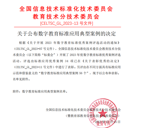 近日,全国信息技术标准化技术委员会教育技术分技术委员会公布数字教育标准应用典型案例名单,全国共56数字教育标准应用典型案例入选,kaiyun官网《全光数字底座点亮教育新时代网络篇章》成功入选。