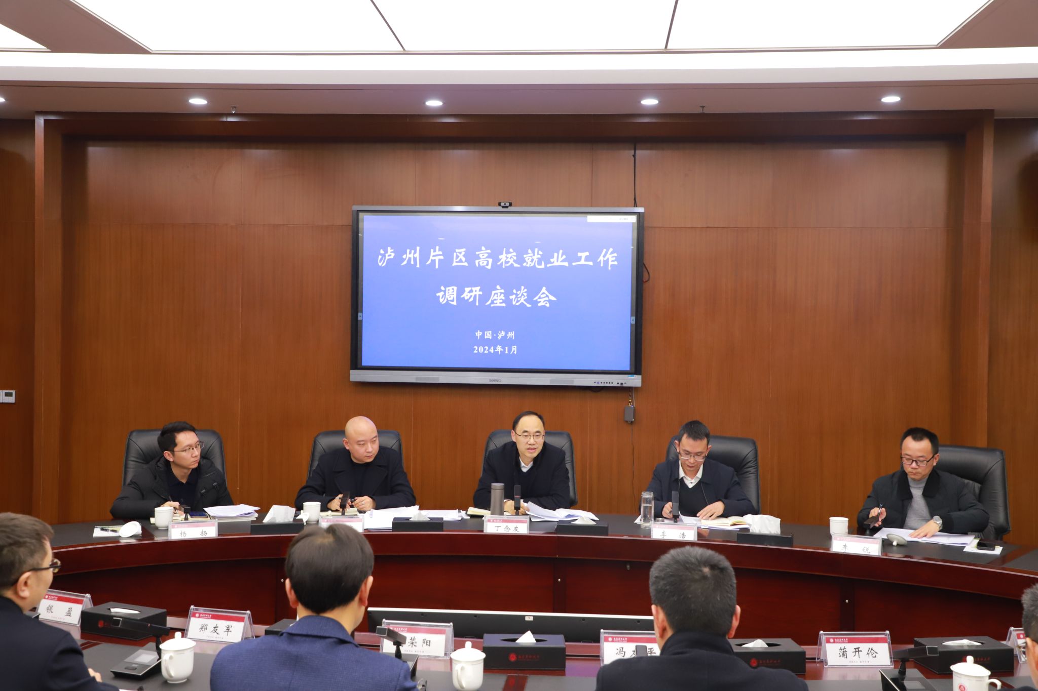 118日下午,省委教育工委委员,教育厅党组成员、副厅长丁念友带队来校开展就业专项调研工作,并在学校召开泸州片区高校就业工作调研座谈会。省教育厅高校学生工作处处长李浩、就业指导中心主任乔木陪同调研。泸州市教育和体育局副局长冯友平、在泸7所高校分管校领导、招生就业处、二级院系负责同志、教师代表、学生代表及用人单位代表等参加调研座谈会。会议由丁念友主持。