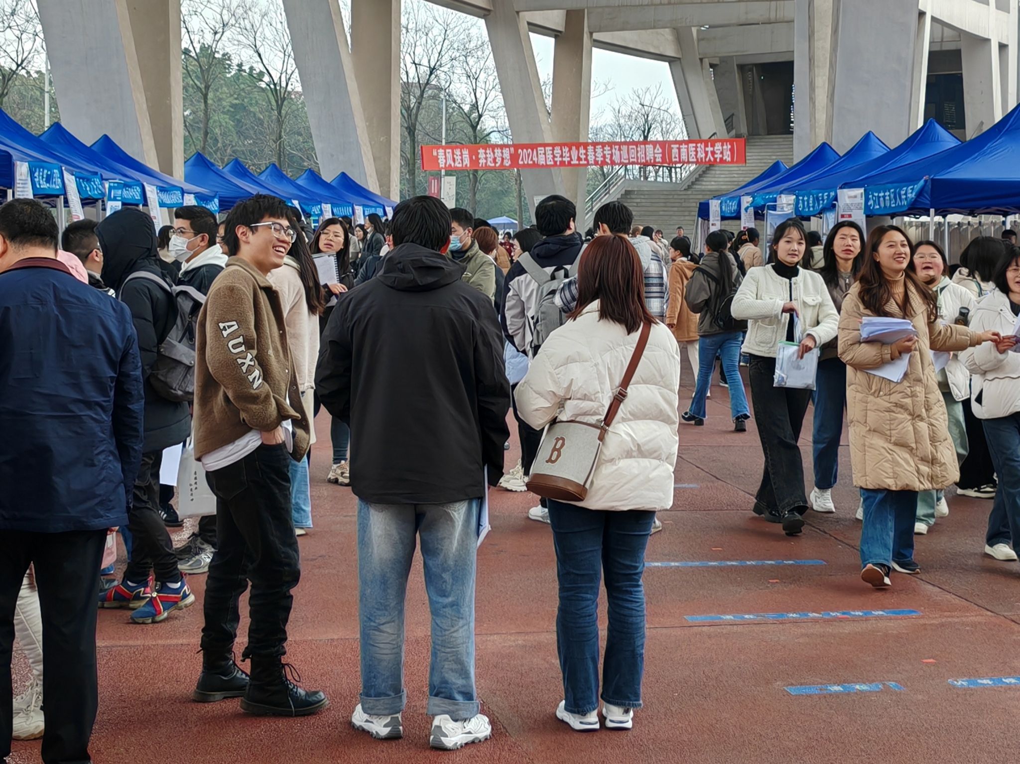 229日下午,学校与医招网联合开展的春风送岗·奔赴梦想”2024届全国医学类高校毕业生春季专场巡回招聘会在城北校区奥体中心主体育馆举办。这是学校抢抓春招机遇,在开学第一周举办的中型专场招聘会。
