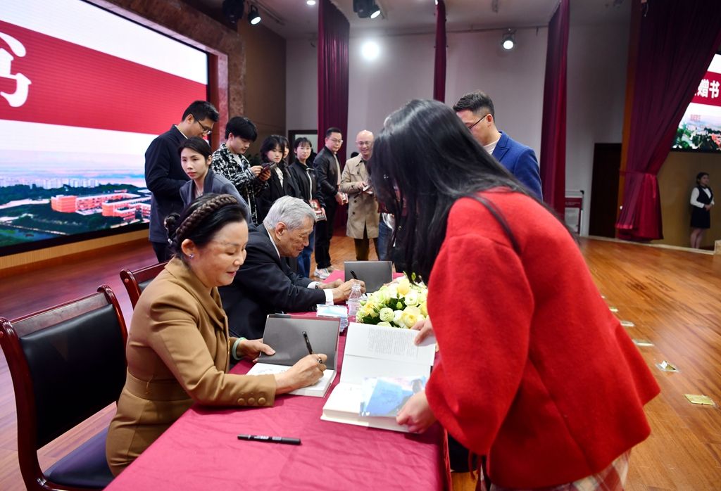 讲座最后,蒋霞萍女士上台与李昌钰博士共同为师生代表签名赠书。