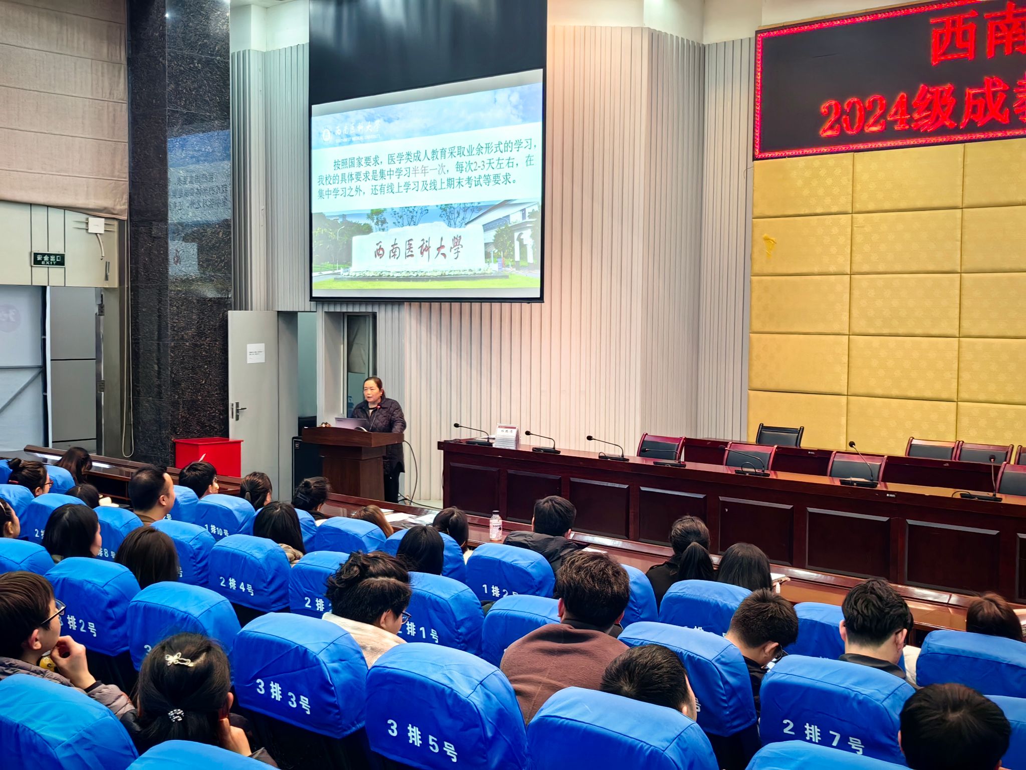 典礼之后, 2024级成教新生班主任刘芳、杜鹏伟为新生们进行了入学教育,从学生管理、安全教育、教育教学安排以及学籍学位等各个方面对新生进行了入学指导培训。