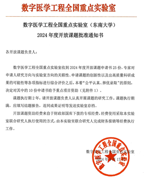 kaiyun官网教师获数字医学工程全国重点实验室重点项目立项