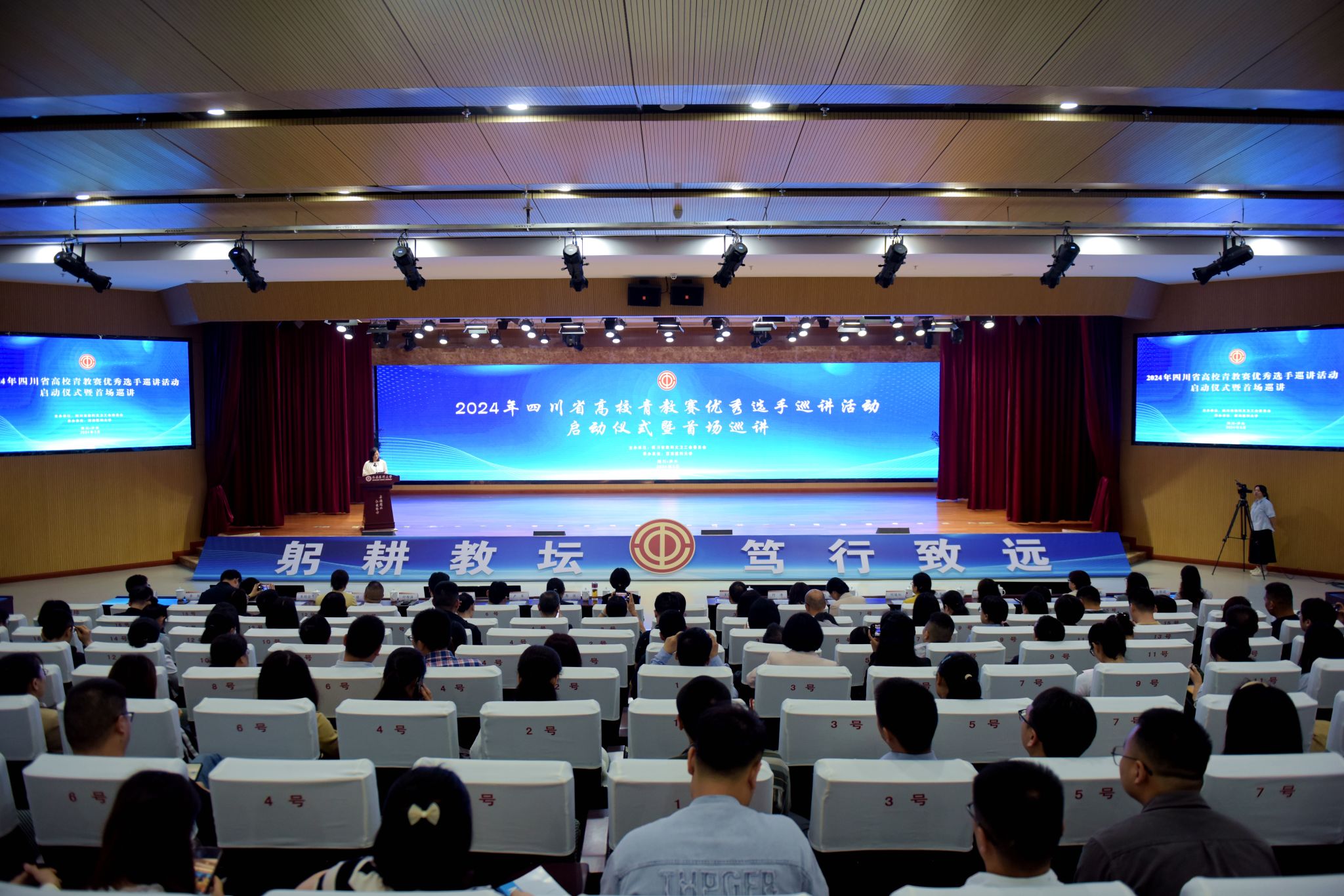 为深入学习贯彻习近平新时代中国特色社会主义思想和党的二十大精神,贯彻落实习近平总书记教师节重要指示精神、中国教科文卫体工会关于开展全国高校青教赛优秀选手巡讲活动的要求,大力弘扬劳模精神、劳动精神、工匠精神和教育家精神,进一步发挥全国、全省高校青年教师教学竞赛优秀获奖选手的示范带动作用,助力新时期教师队伍高质量发展,5月9日上午,2024年四川省高校青教赛优秀选手巡讲活动启动仪式暨首场巡讲在kaiyun官网城北校区第一学术报告厅举行。