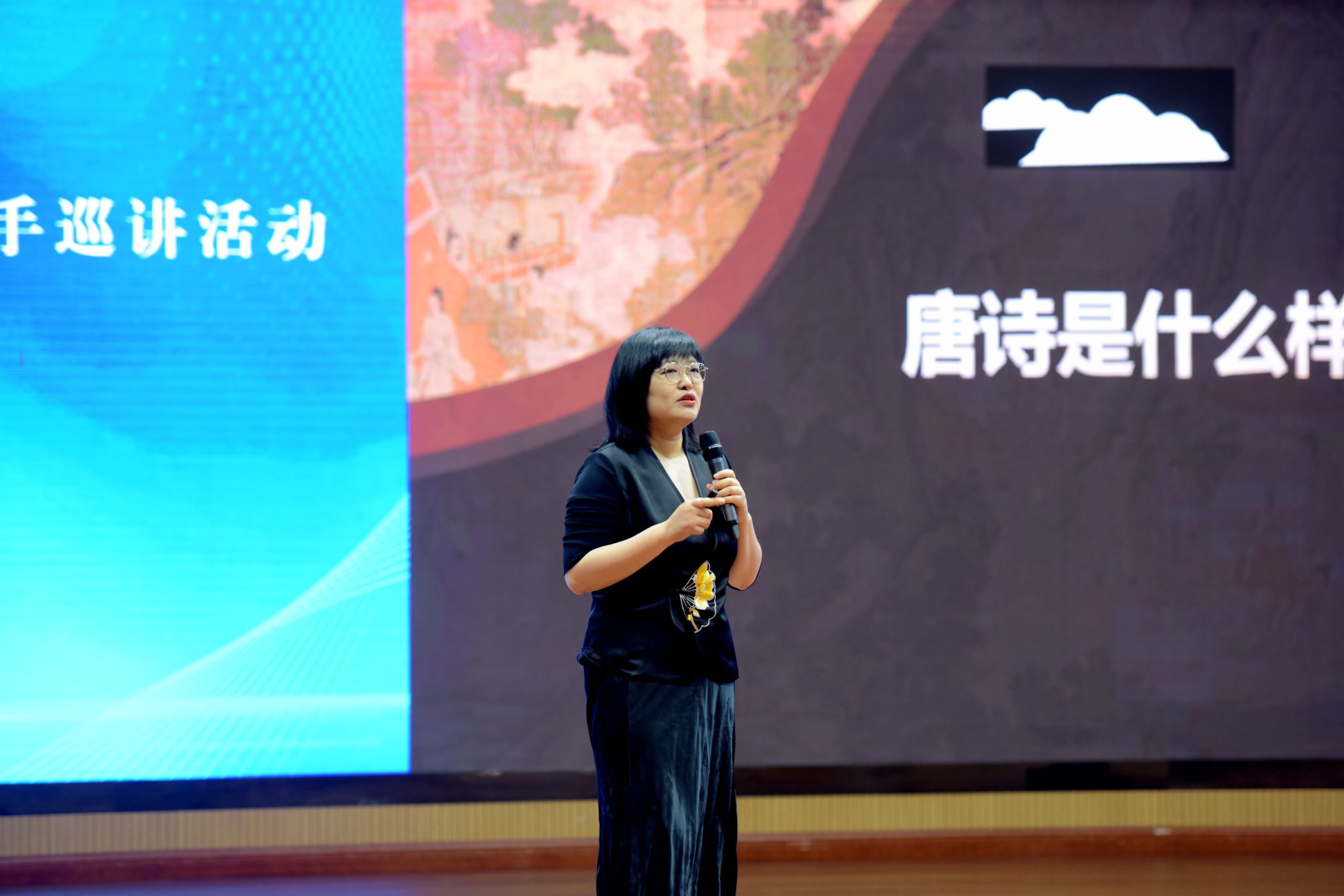 “你认为的唐诗是什么样的?”在巡讲环节,四川大学中国古代文学教研室主任、第六届省高校青年教师教学竞赛文科组一等奖第一名、省五一劳动奖章获得者戴莹莹首先抛出问题引发观众思考,并以唐代铜官窑瓷器题诗《君生我未生》为例,引入白话诗和白话诗派,让观众了解唐诗的多重维度。