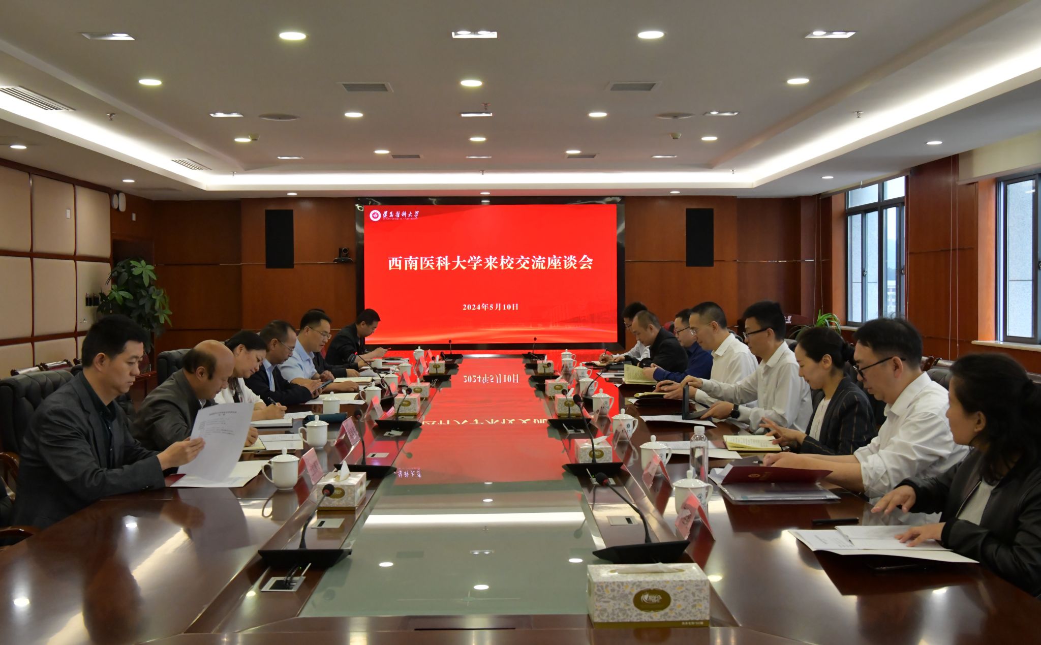 59—10日,学校党委常委、副校长赵领率发展规划处、研究生院、财务管理处、国有资产管理处、基建后勤处、药学院等有关部门同志赴遵义医科大学调研交流,座谈会由遵义医科大学发展规划处处长刘涛主持。