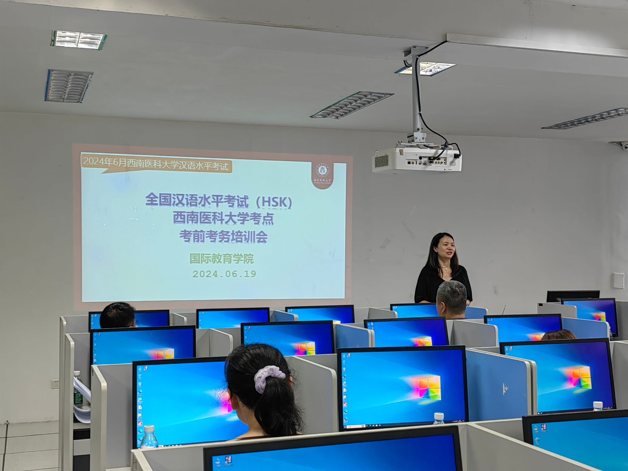 为确保考务流程的严谨性和规范性,学校精心组织HSK考务人员培训。全体考务人员均持有教育部中外语言交流合作中心颁发相应等级的《国际中文考试管理证书》,并按要求积极参与了6月19日的考务人员培训。培训会上针对不同时间段、不同工作内容分别制定了详细的工作安排,明确工作流程和具体要求,提高了考试组织工作的规范性。针对HSK考场考试中可能出现的各种突发情况,制定了详细的工作预案和处理流程,确保考试顺利进行。