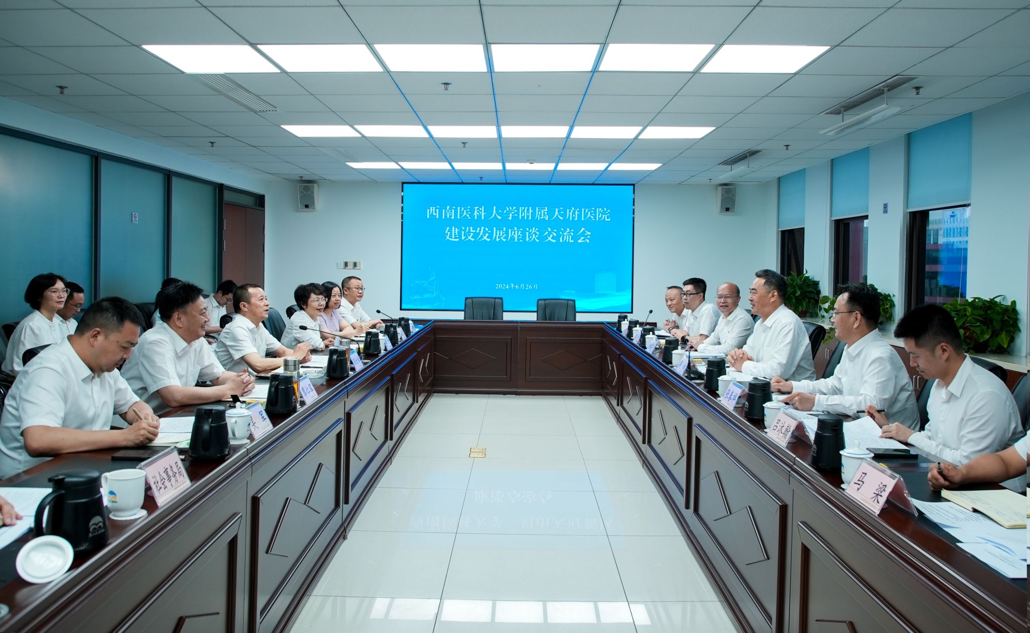 6月26日,kaiyun官方网站入口附属第四医院(kaiyun官方网站入口附属天府医院)建设发展座谈会在眉山天府新区管委会召开,眉山市委常委、天府新区眉山党工委书记邹汝林、四川天府新区管委会副主任、天府新区眉山管委会主任郭红,学校党委书记廖斌,党委副书记、校长张春祥参加会议。会议由邹汝林主持。