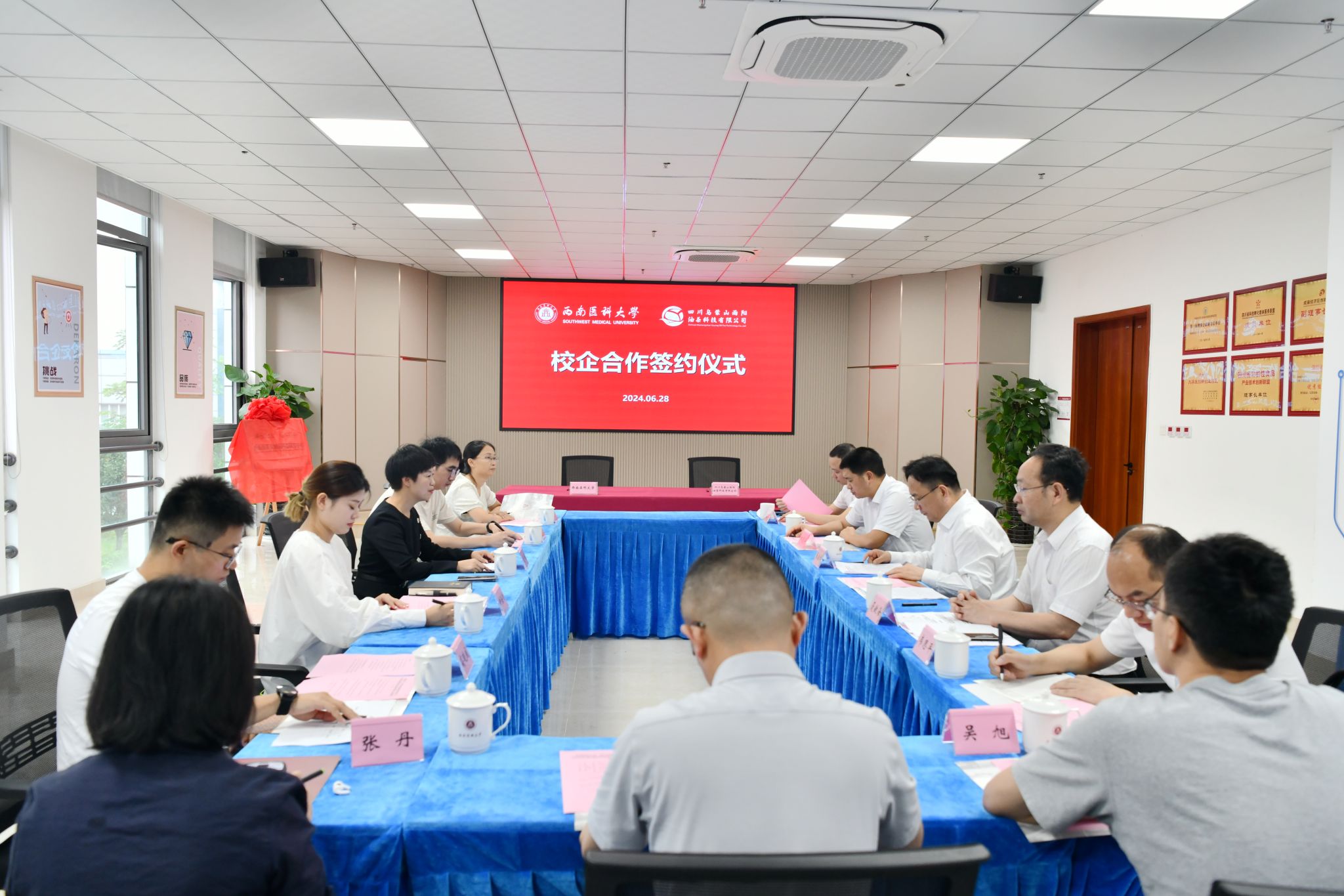 雨阳油茶公司相关部门负责人和学校科技处、大学科技园管理办公室、药学院等相关负责人及科研团队代表共同见证了签约揭牌仪式。