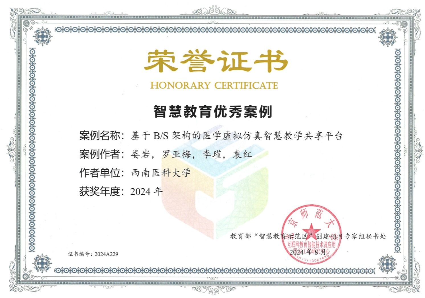 近日,由教育部科学技术与信息化司指导,"智慧教育示范区"创建项目专家组秘书处主办的“2024年度智慧教育优秀案例征集活动中,kaiyun官方网站入口医学信息与工程学院娄岩教授团队申报的《基于B/S架构的医学虚拟仿真智慧教学共享平台》脱颖而出,荣获智慧教育解决方案类优秀案例。
