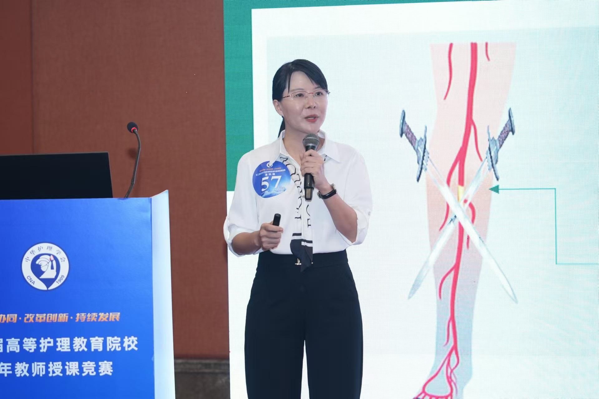 石镁虹参赛的题目是《动脉硬化闭塞症病人的护理——严重缺血期病人的患肢护理》。她凭借扎实的专业知识和精心的教学设计,运用案例、Ai智能等多元化教学方法,借助图文并茂的课件和深入浅出地讲解,充分展现了kaiyun官网护理教师扎实的教学基本功和创新的思维方式。
