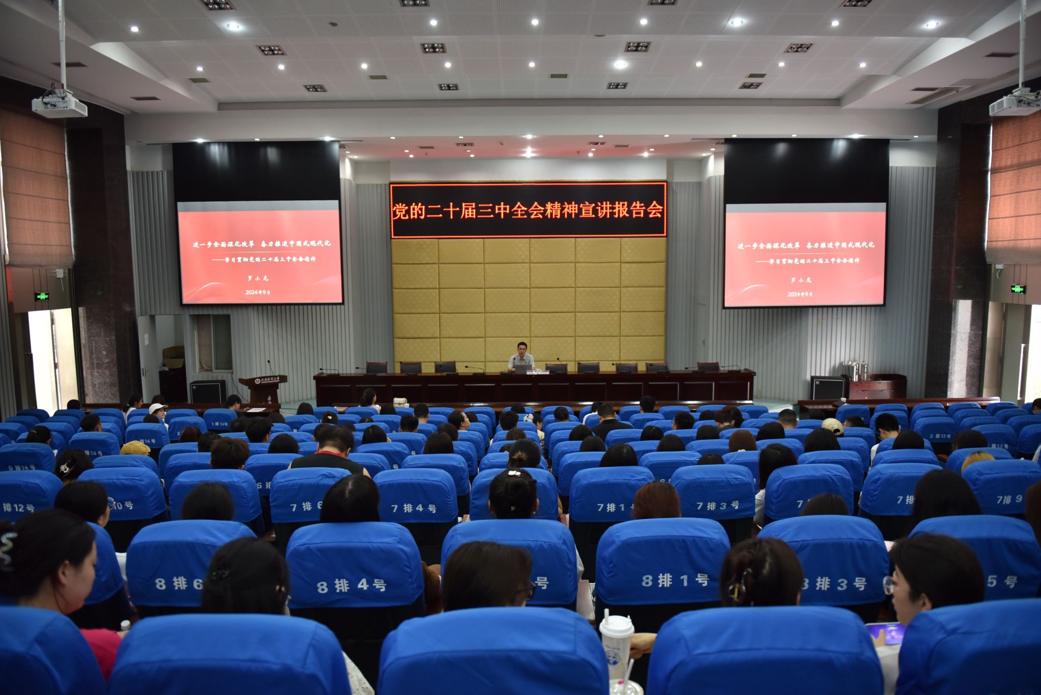 为深入学习宣传贯彻党的二十届三中全会精神,把全校师生的思想和行动统一到全会决策部署上来,把力量凝聚到全会的各项任务上来,按照泸州市委宣传部统一部署,925日,学校举办党的二十届三中全会精神宣讲报告会,邀请泸州市委宣讲团第十分团成员罗小龙教授作题为《进一步全面深化改革,奋力推进中国式现代化》专题宣讲。学校党员干部、教职工代表、学生代表约200人参加。