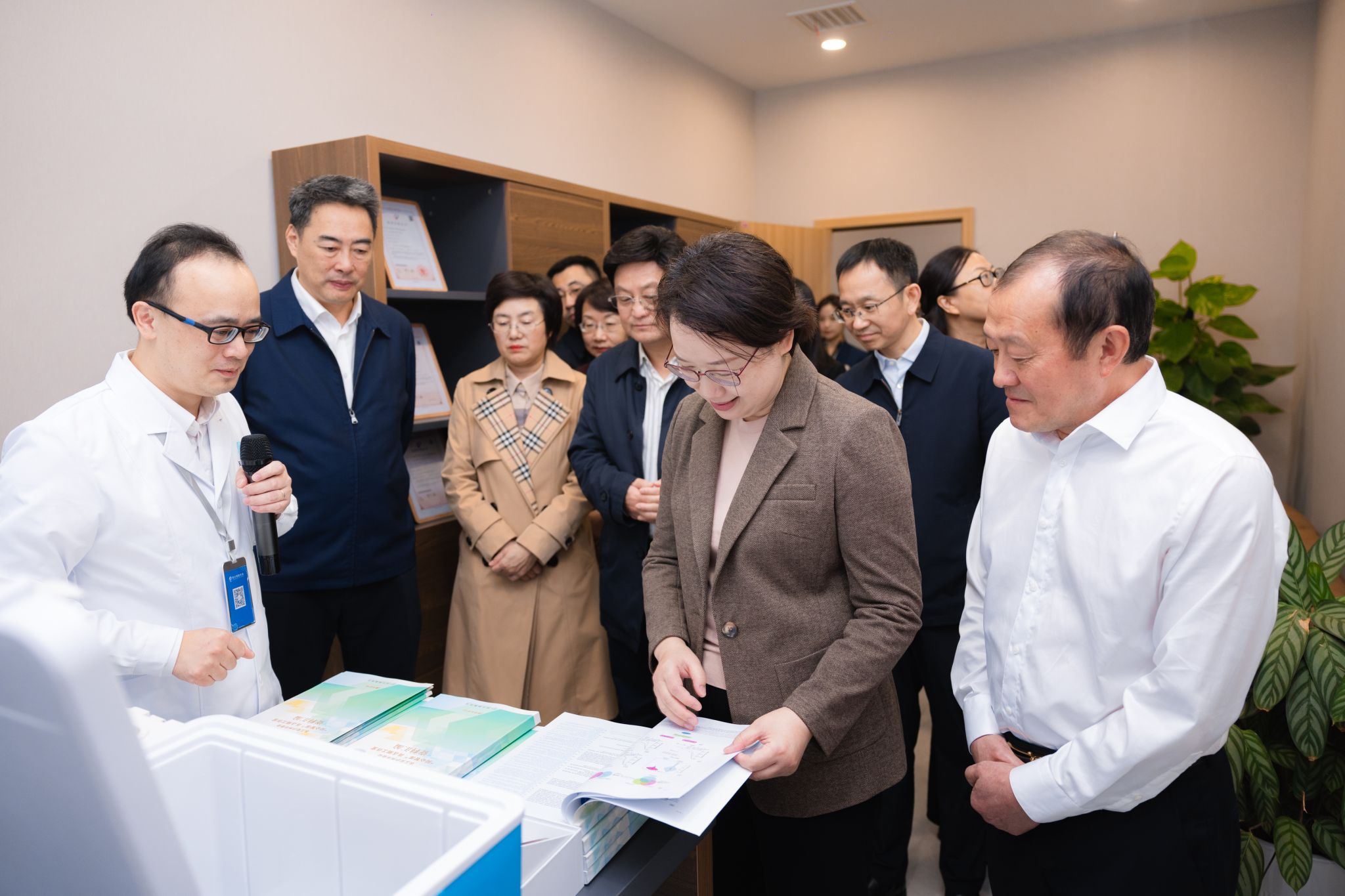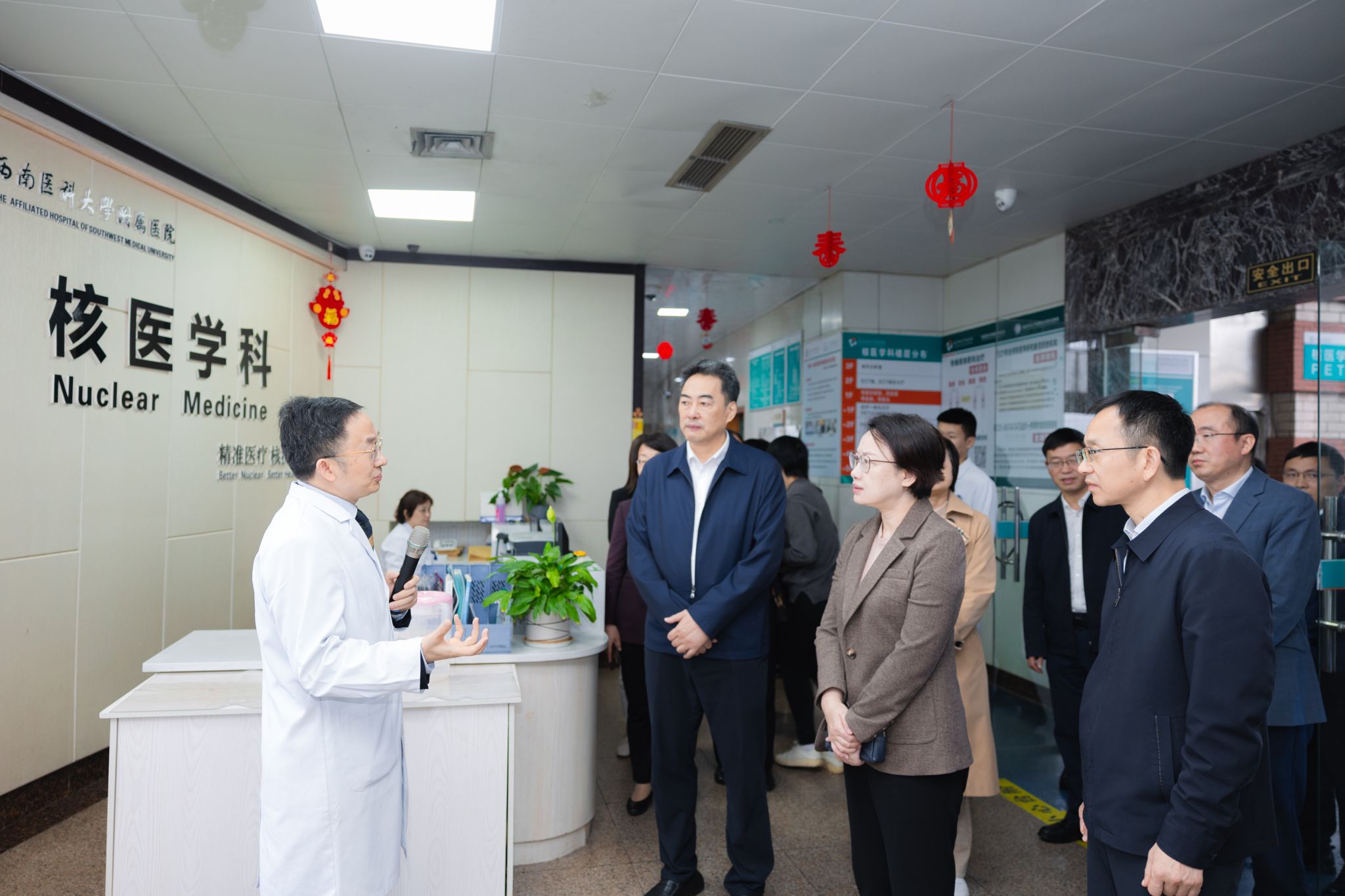 在附属医院忠山院区,调研组深入核医学科、医学检验部,听取了医院整体发展概况,核医学发展进展、临床诊断与治疗、放射性药物研发及临床转化,医学检验部医疗、教学、科研、管理及实验室运行等专项汇报,并与核医学科来自西安、湖南、山西的病友们亲切交谈,了解治疗效果与就医感受。