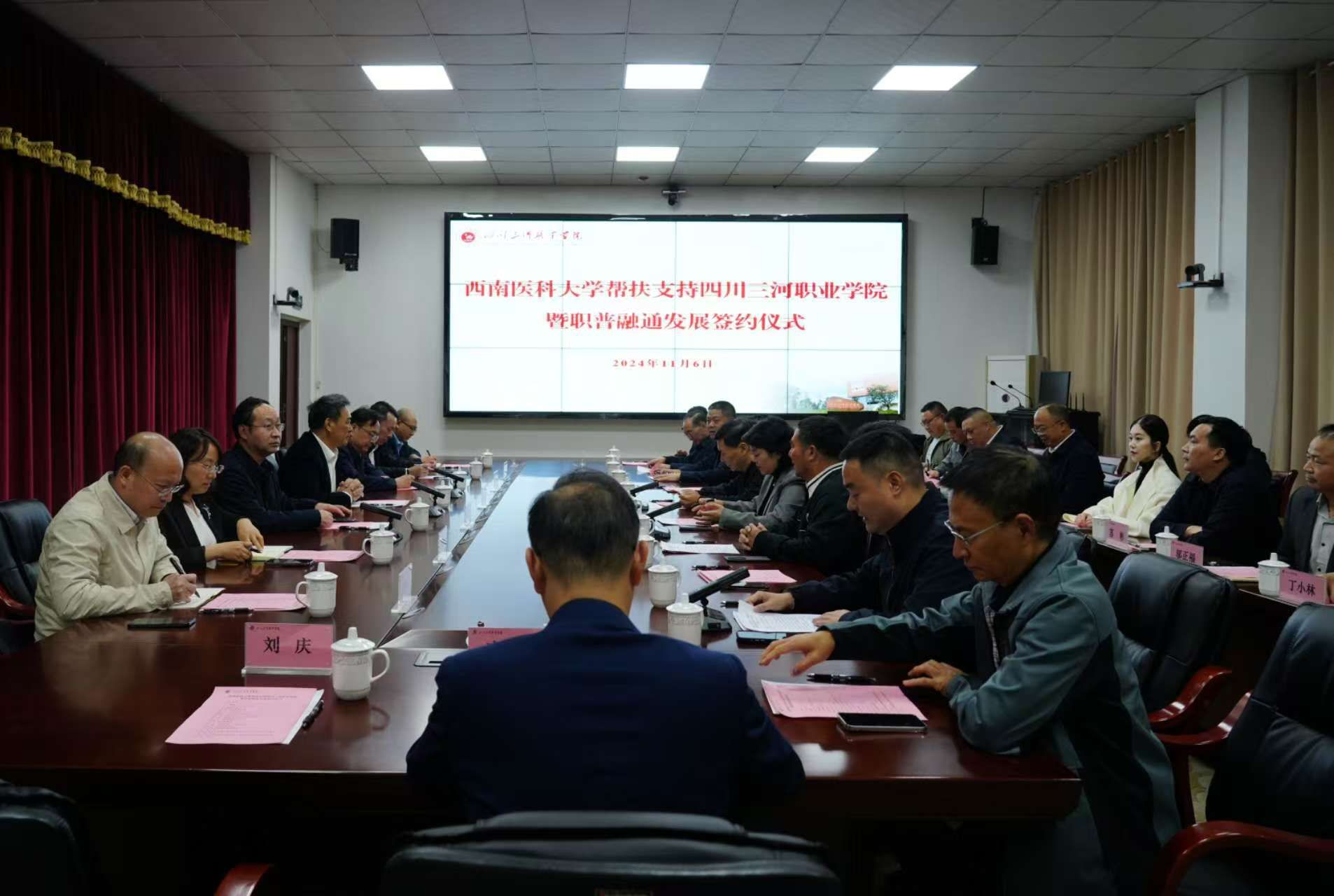 学校党政办公室、教务处、继续教育学院、对外联络处,合江县教育体育局、县人民医院、县中医医院,四川三河职业学院全体校领导、党委办、行政办、继续教育培训处、校企合作办等相关人员参加了签约仪式。