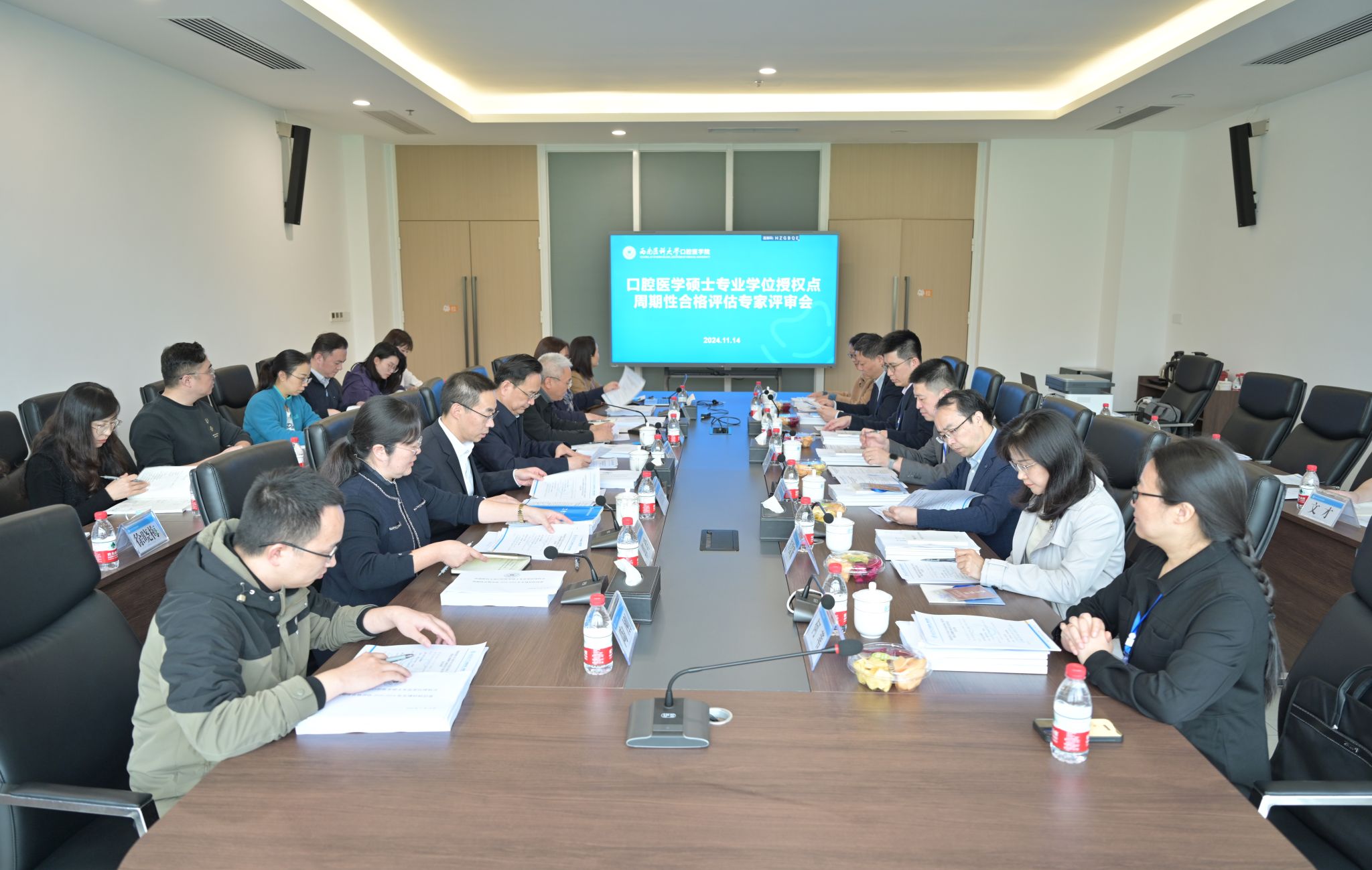 按照国务院学位委员会、教育部、省教育工委以及学校相关文件要求,11月14日下午,学校口腔医学硕士专业学位授权点接受周期性合格评估。此次评审由四川大学华西口腔医学院韩向龙教授担任组长,上海交通大学附属九院林开利教授、中山大学光华口腔医学院陈泽涛教授、重庆医科大学口腔医学院郑雷蕾教授、南京医科大学口腔医学院袁华教授、遵义医科大学口腔医学院何苇教授、昆明医科大学口腔医学院刘亚丽教授为评审组成员。学校党委副书记、校长张春祥出席现场评审会,口腔医学院·附属口腔医院在家院领导及师生代表参会。研究生院院长范贤明主持第一阶段会议。