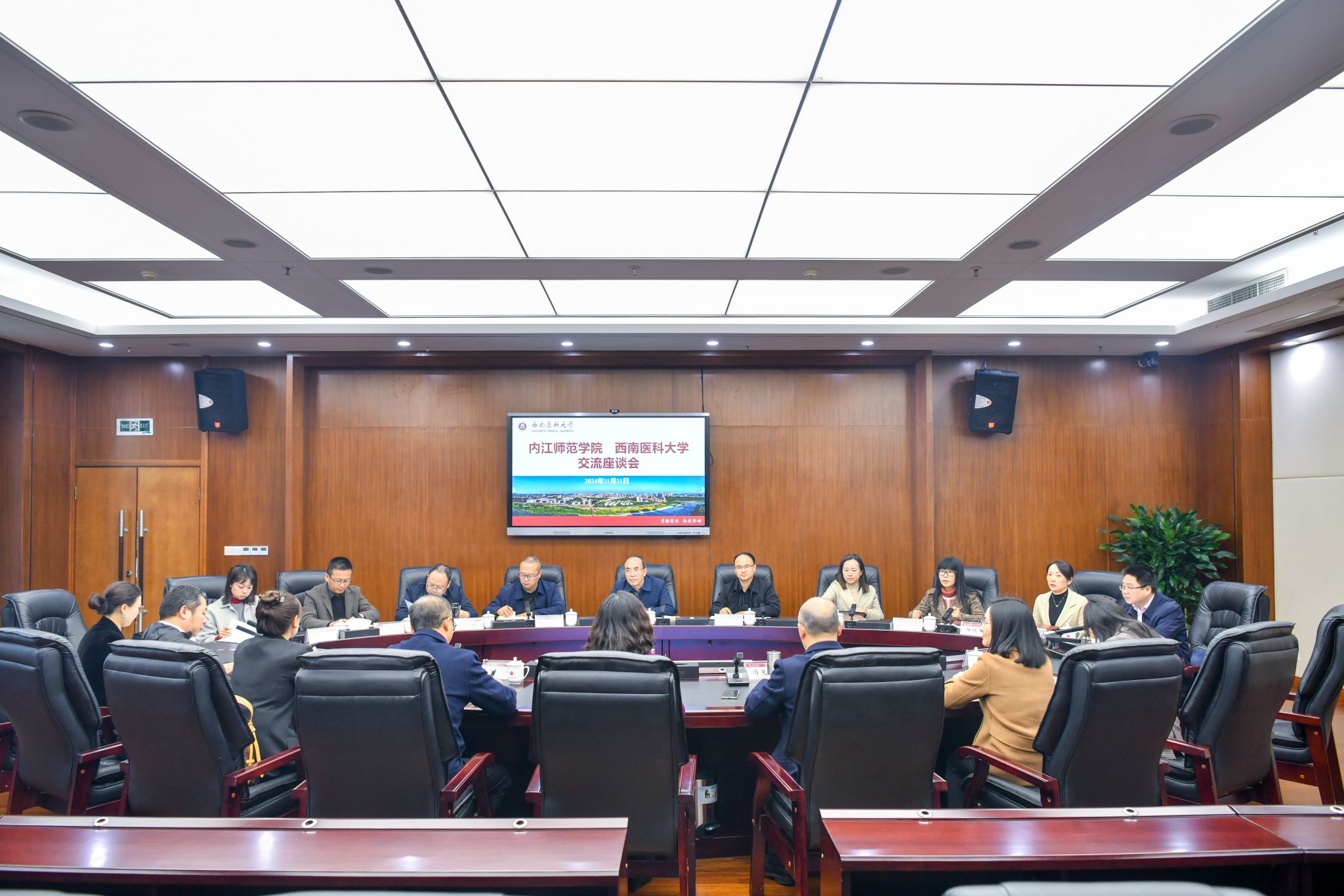 1121日,内江师范学院党委副书记黄辉一行10人来校调研交流并召开座谈会。学校党委副书记、工会主席刘毅及组织部、宣传部·统战部、工会·妇联等职能部门参加交流座谈。党委常委、组织部部长柏珂主持会议。