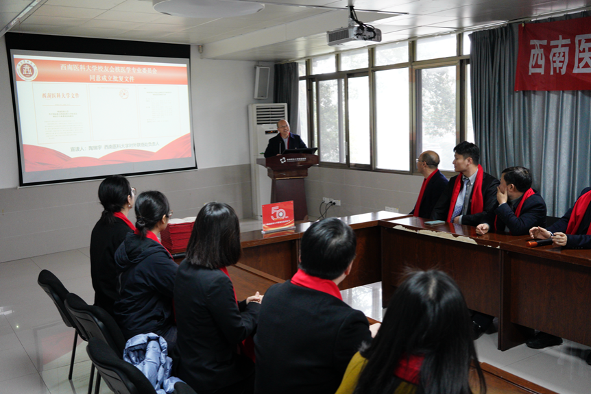 12月8日,kaiyun官方网站入口校友会核医学专业委员会(下称核医学专委会)成立大会在附属医院核医学科举行。学校党委书记廖斌,对外联络处负责人陶瑞宇以及来自广东、重庆和四川各地市州的30余位校友代表参加会议,会议由附属医院核医学科主任陈跃校友主持。