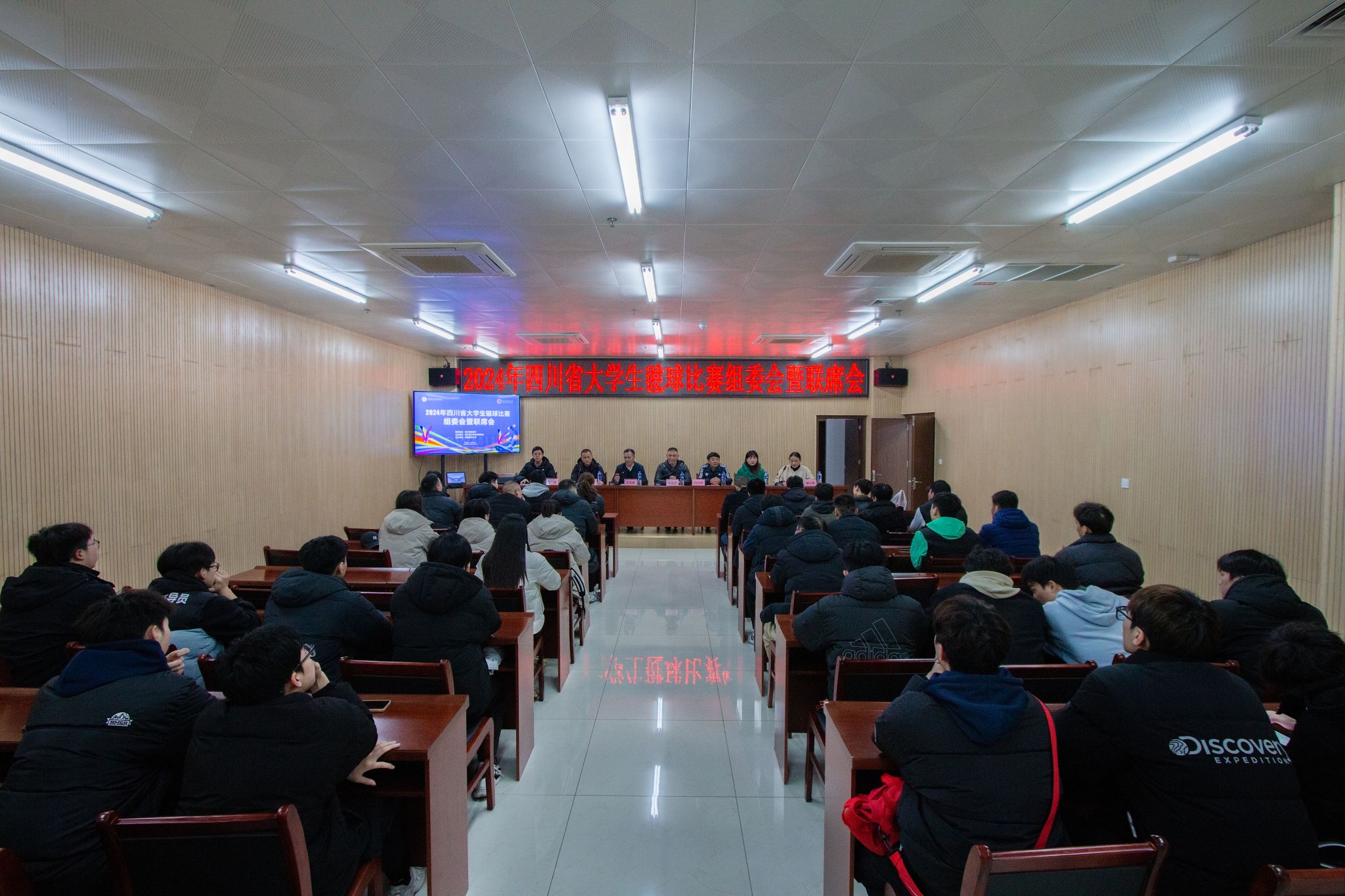 12月5日晚,2024年四川省大学生毽球比赛组委会暨联席会议在青年体育馆会议室召开。四川省大学生体育协会会长杨远波、竞训部部长吕志刚,kaiyun官网体育学院院长王定宣,本次赛事监督罗亚娟,裁判长廖健、副裁判长彭崴,各参赛高校的领队、教练员和运动员代表参加会议。会议由kaiyun官网体育学院党委书记邹小萍主持。