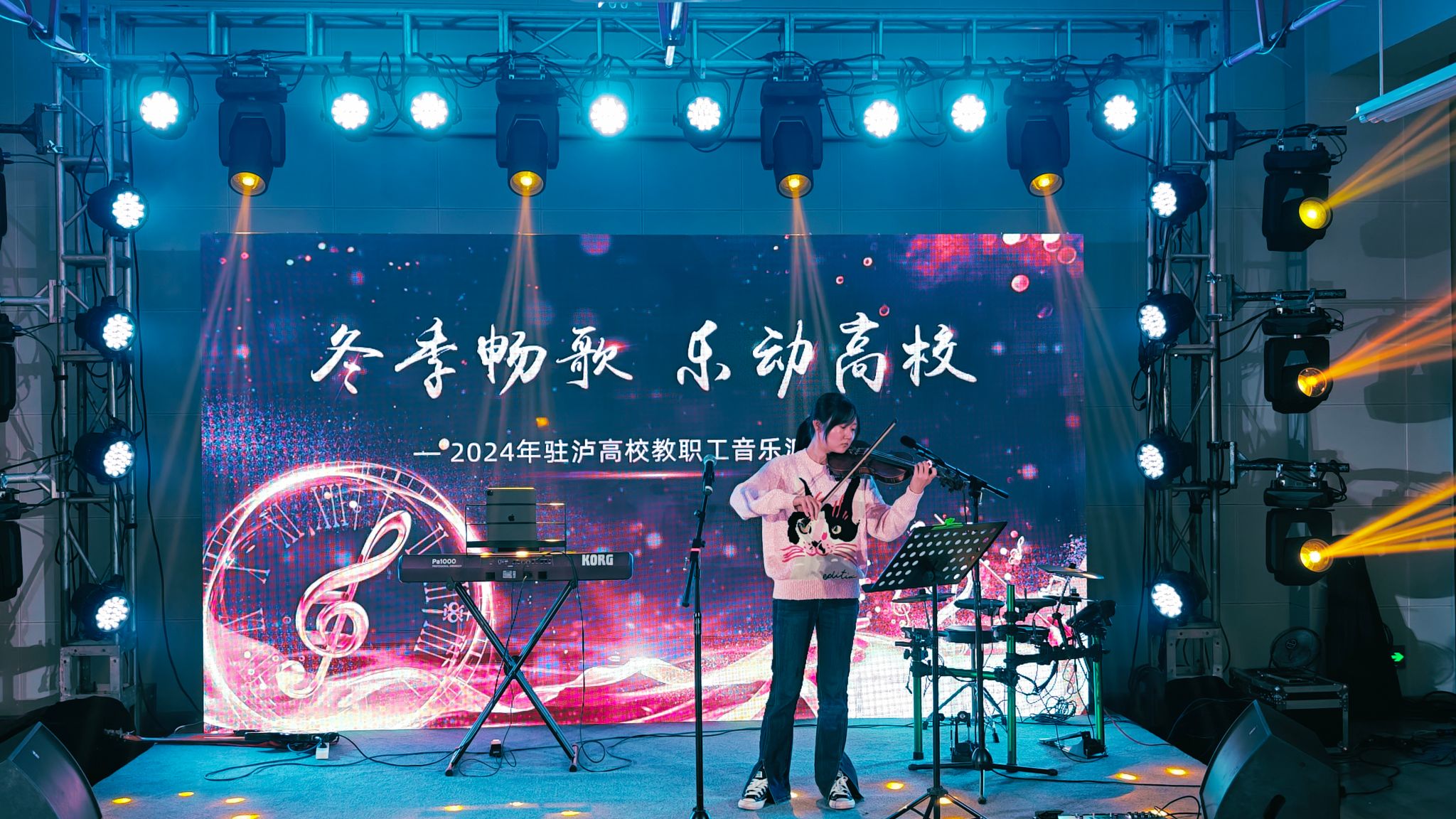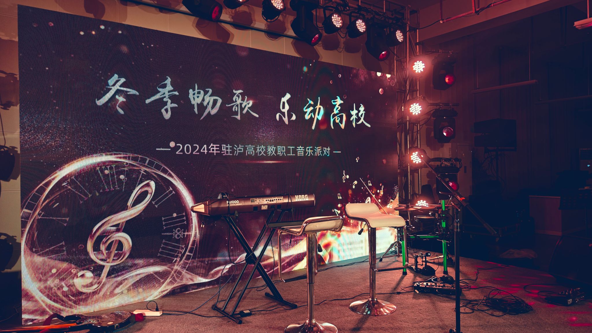 1221日冬至之夜,在四川省教科文卫工会指导下,泸州市总工会携手kaiyun官方网站入口工会、四川警察学院工会、四川化工职业技术学院工会和泸州职业技术学院工会,共同为大家呈现了一场精彩纷呈的音乐派对——“冬季畅歌,乐动高校。此次音乐派对在学校教职工活动中心多功能厅举行,旨在丰富教职工的文化生活,增进校际间的友谊与交流。