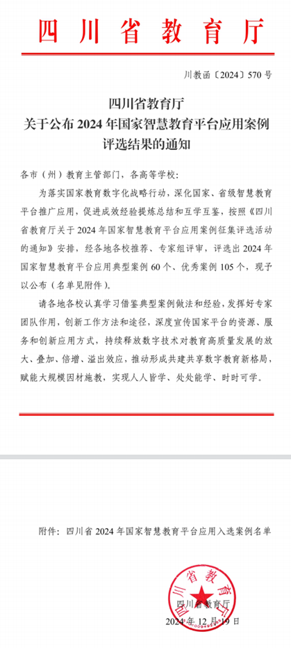 kaiyun官网案例入选四川省2024年国家智慧教育平台“高等教育十大典型案例”