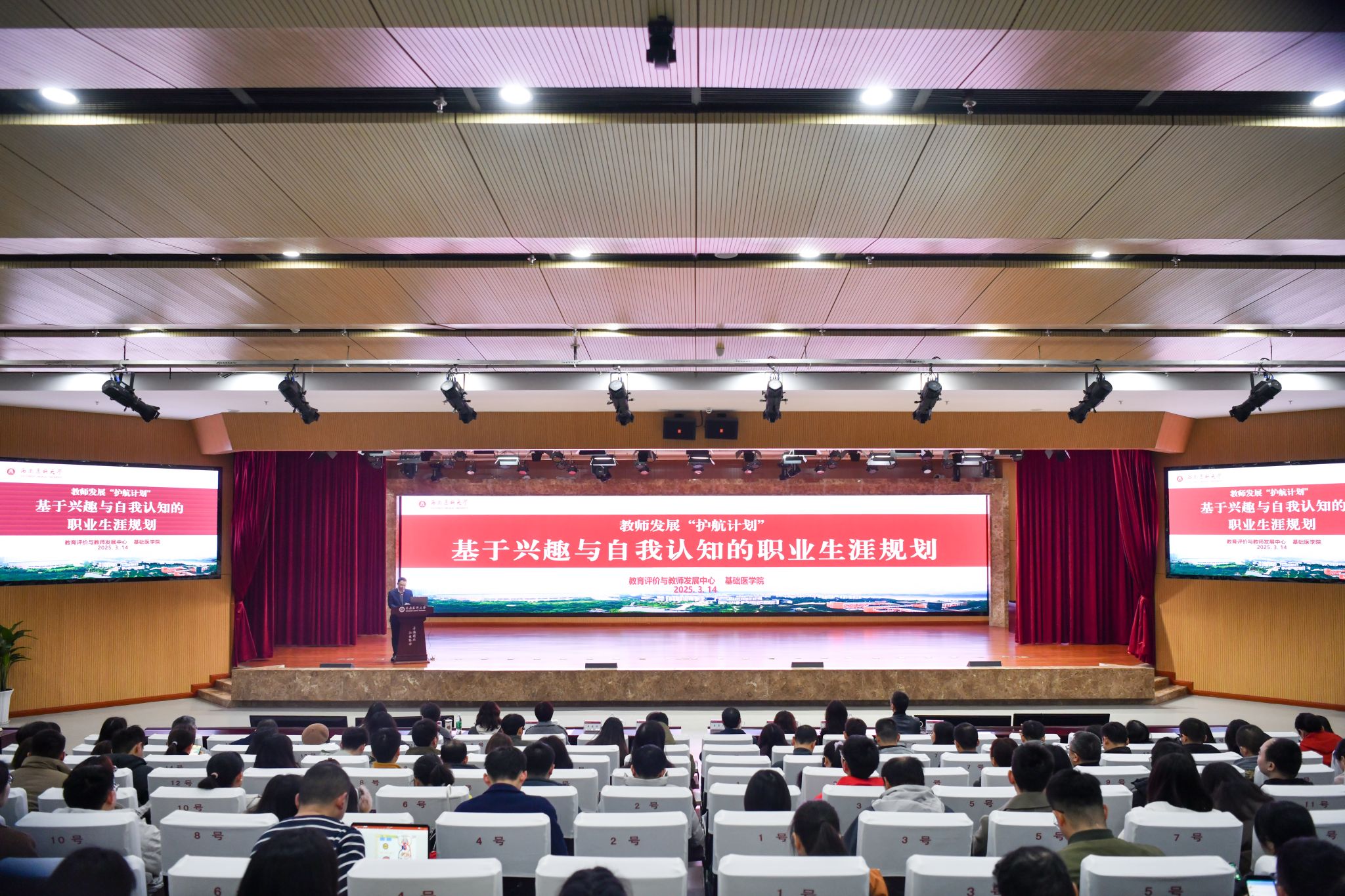 为助力教师基于兴趣及自我认知进行科学合理的职业生涯规划,激发教师的职业热情与创造力,推动教师在医学教育领域持续成长、走向成功,3月14日上午,kaiyun官网教师发展“护航计划”专题讲座在城北校区第一学术报告厅举行。本次讲座特邀中国解剖学会理事长、空军军医大学李云庆教授,中国解剖学会副理事长、原河北医科大学校长崔慧先教授担任主讲嘉宾。学校党委副书记、校长何涛出席讲座,学校教务处、教育评价与教师发展中心负责人,基础医学院领导班子及全校各院系190余名教师代表参加。讲座由基础医学院院长吴建明主持。
