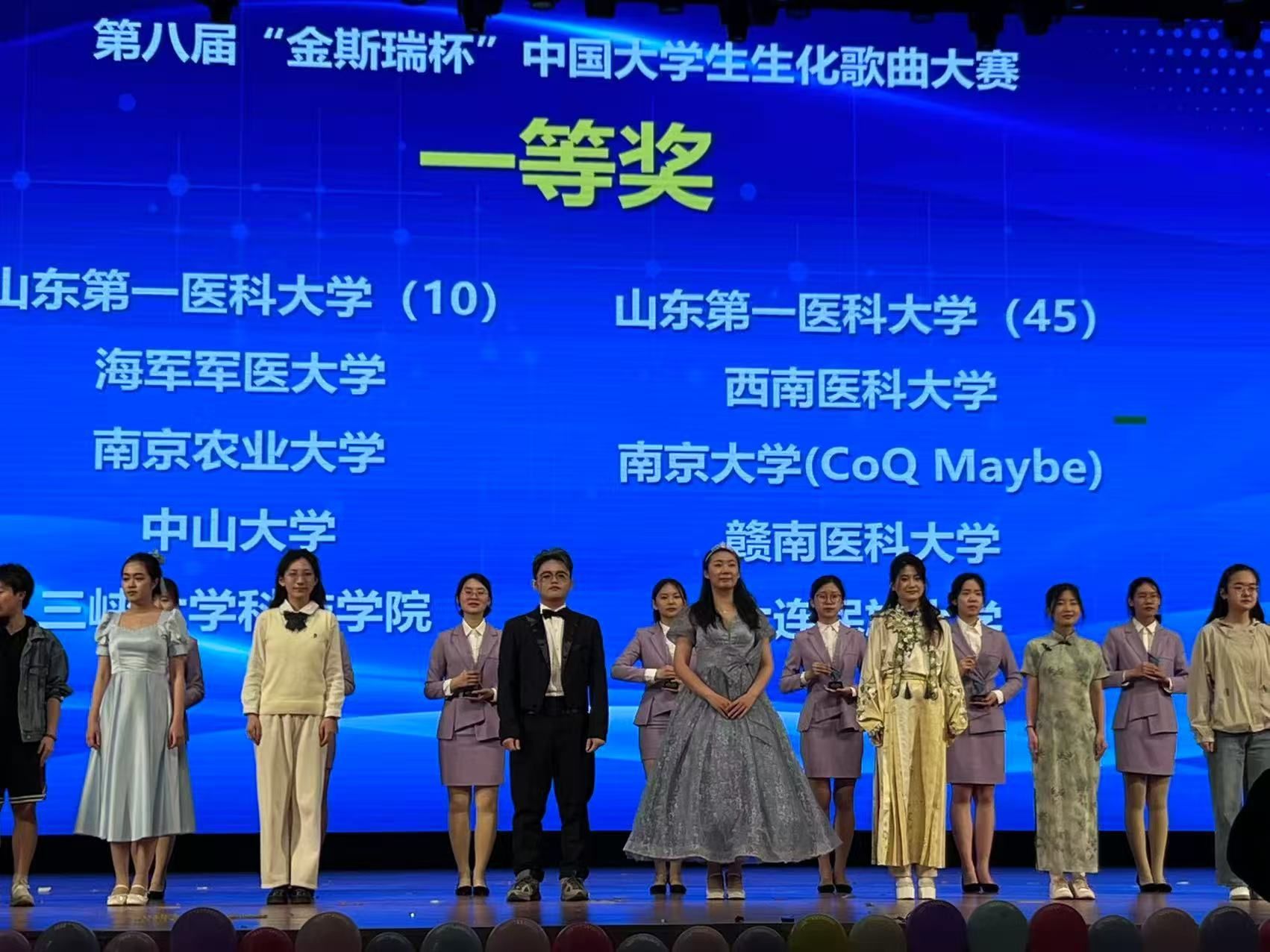 322-23日,由中国生物化学与分子生物学会教育专业分会主办的第八届金斯瑞杯中国大学生生化歌曲大赛在山东第一医科大学举行,来自北京协和医学院,南京大学,中山大学等全国68所高校师生参加了此次比赛。kaiyun官网基础医学院2023级临床医学专业学生张爱琳、杜秋慧、周霖、何炳贤,药学专业学生郑柳怡,在基础医学院生化教研室老师的带领下代表学校参加了比赛,并在70支高校代表队伍中脱颖而出,获得全国一等奖的优异成绩。