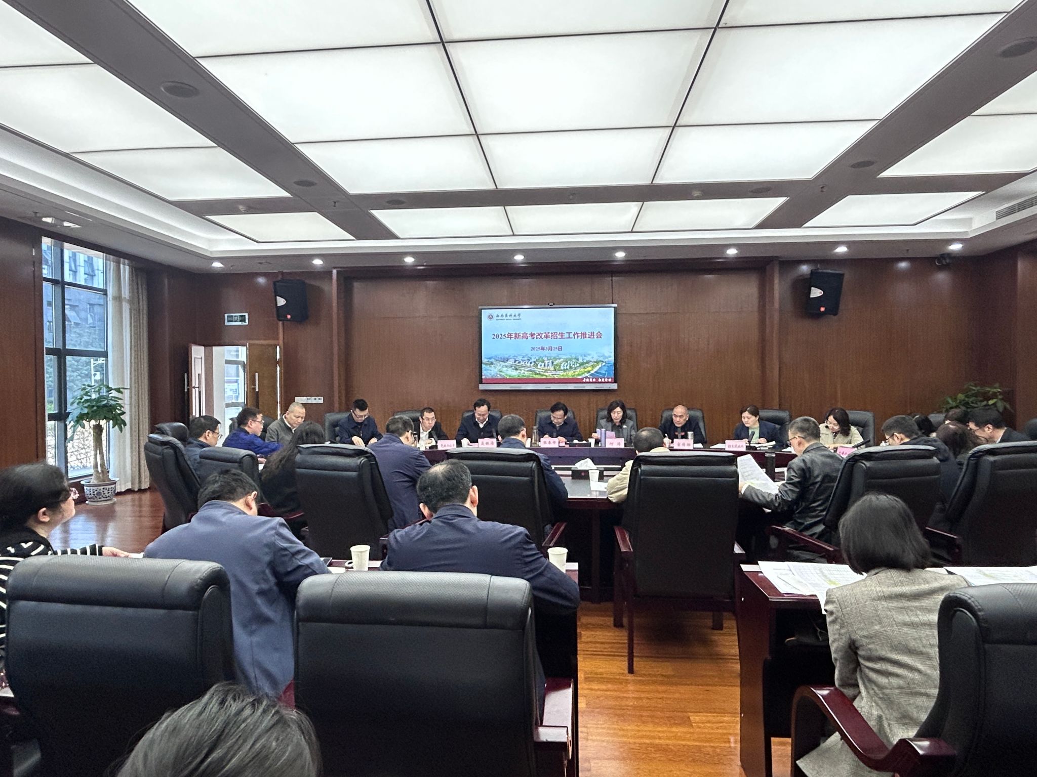 会上,招生办公室主任张国皓汇报了2025年新高考改革模拟演练情况,招生就业处处长谭群英部署了下一步招生宣传工作,与会人员围绕专业组设置、招生宣传工作等进行交流发言,积极建言献策。