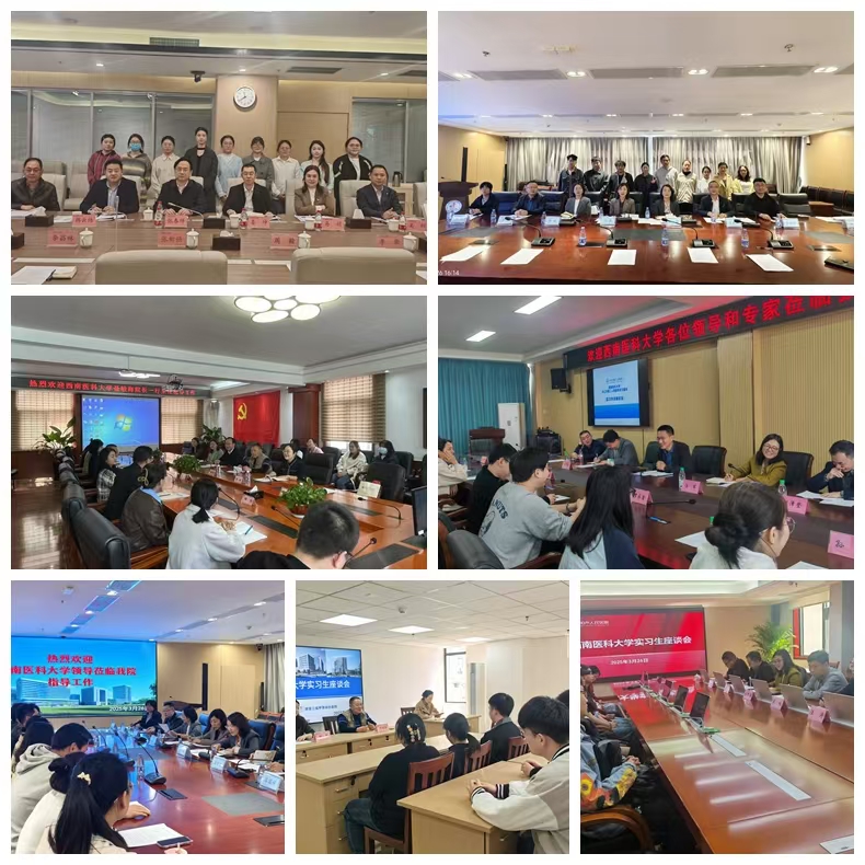 在学生座谈会上,校领导与实习生深入交流,详细了解同学们学习生活情况,勉励同学们珍惜实践机会、锤炼临床技能,同时做好职业规划。同学们纷纷表示:“基地带教老师的悉心指导和学校领导的关怀让我们倍感温暖,对职业发展充满信心。”校领导带队还实地考察了临床技能中心、智慧医疗设备等教学设施,并就食宿保障、安全教育等环节与实践教学基地交换优化意见。
