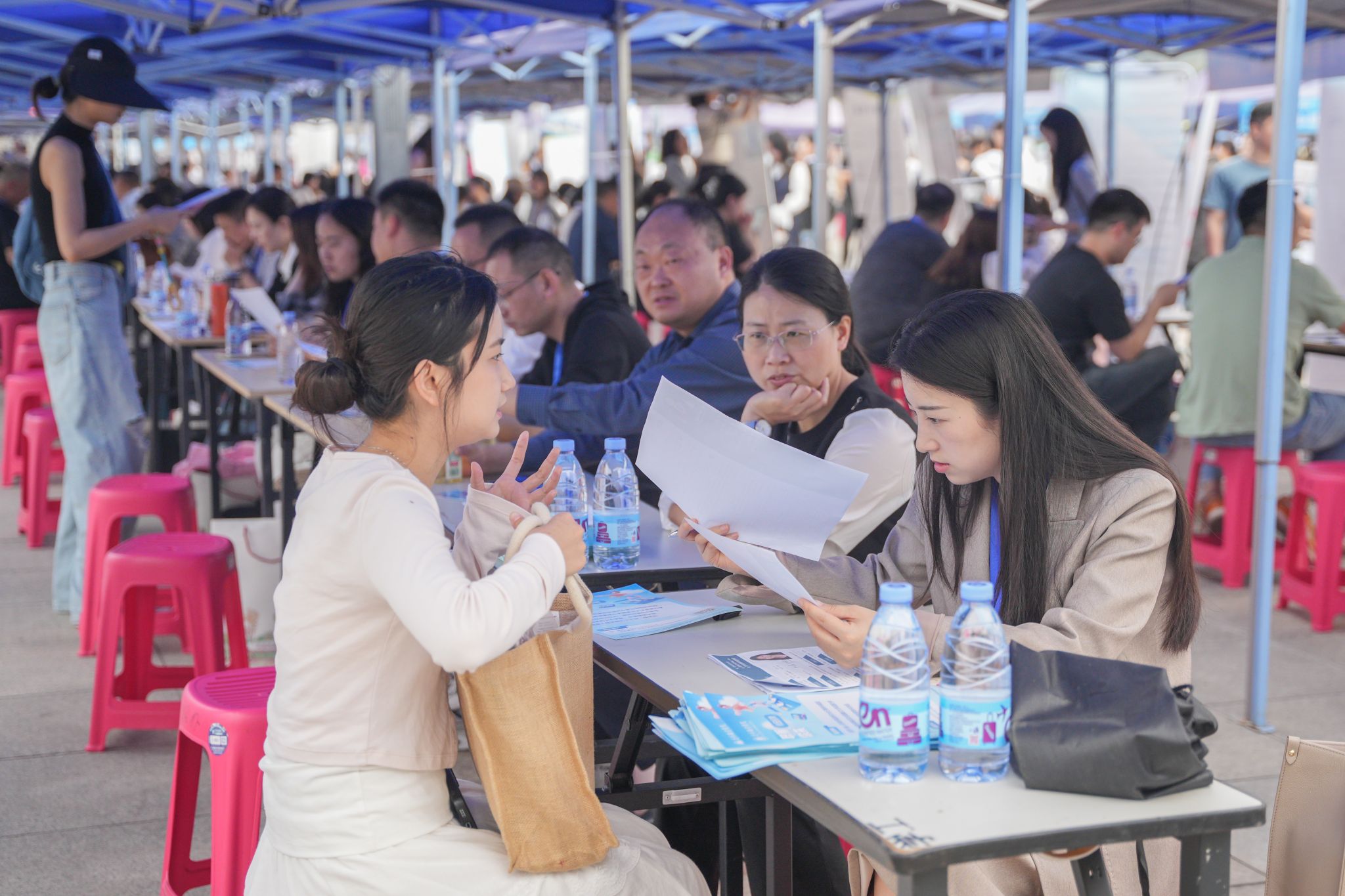 在会场专设的特色服务区,泸州市人才服务中心派出就业指导专家现场提供职业规划咨询;泸州市税务局设立政策咨询点,解读毕业生创业就业税收优惠政策;学校设置“面试礼仪指导”“简历问诊”“简历打印”点位,全方位为毕业生提供求职服务。