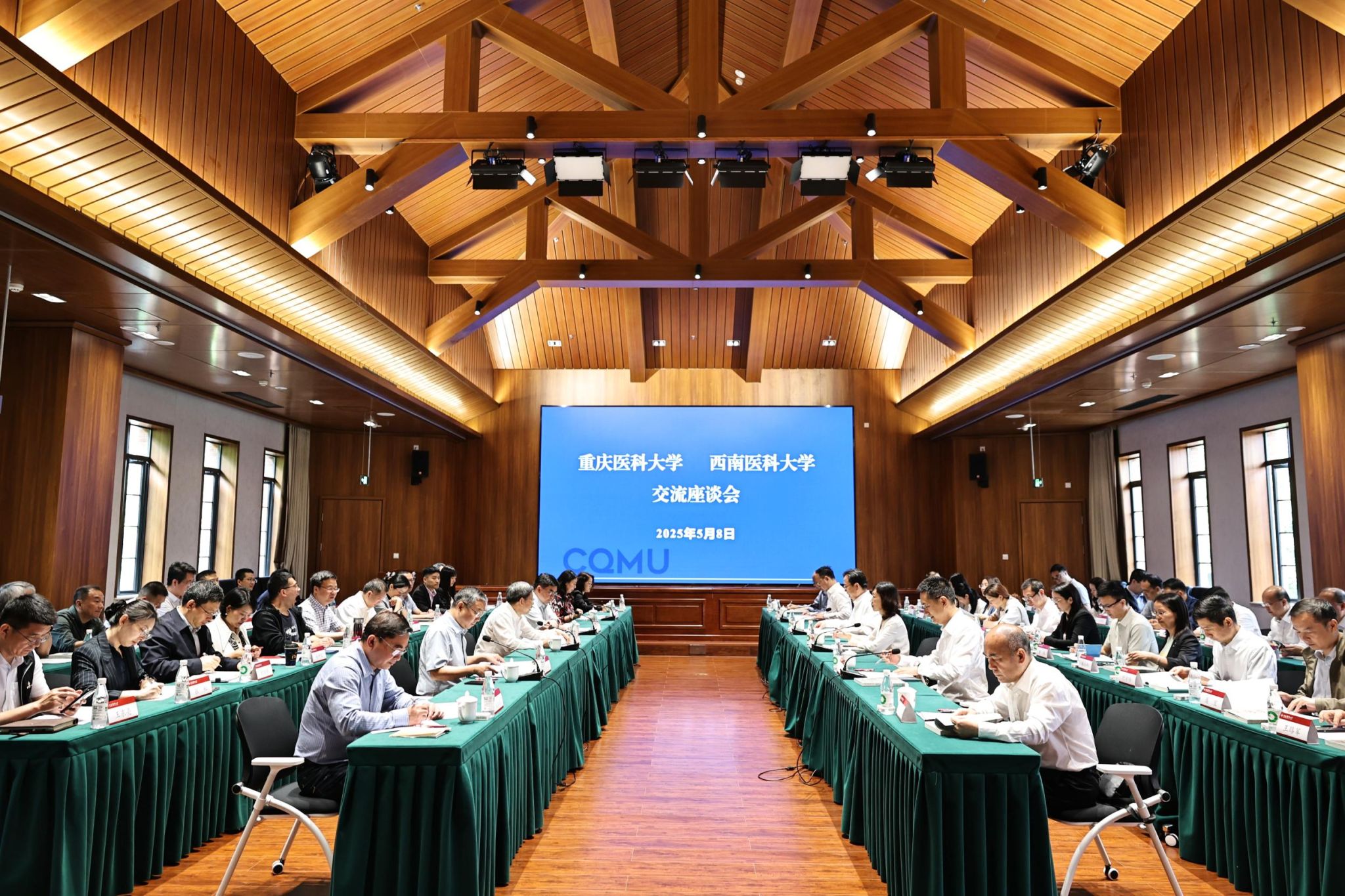 交流中,重庆医科大学党委副书记、副校长袁军,校党委常委、副校长余华荣,副校长刘恩梅围绕调研主题做了交流。学校党委副书记、校长何涛,校党委常委、副校长聂敏海,校党委常委、副校长江涌分别介绍了学校相关工作的思路和举措。