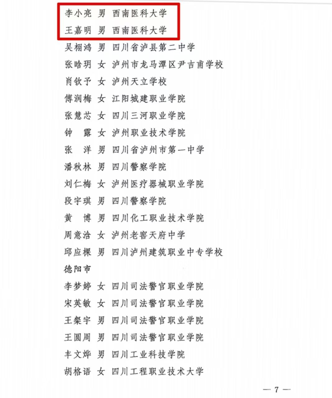 近日,四川省红十字会印发了《关于通报表扬2024年度表现突出的红十字青少年会员、学校红十字会先进工作者的通知》,kaiyun官网临床医学院·附属医院李小亮、公共卫生学院王嘉明等2名同学获评2024年度四川省“优秀红十字青少年会员”,校红十字会理事骆丽平被授予“优秀学校红十字会工作者”称号。学校荣获泸州市“红十字工作爱心单位”称号。