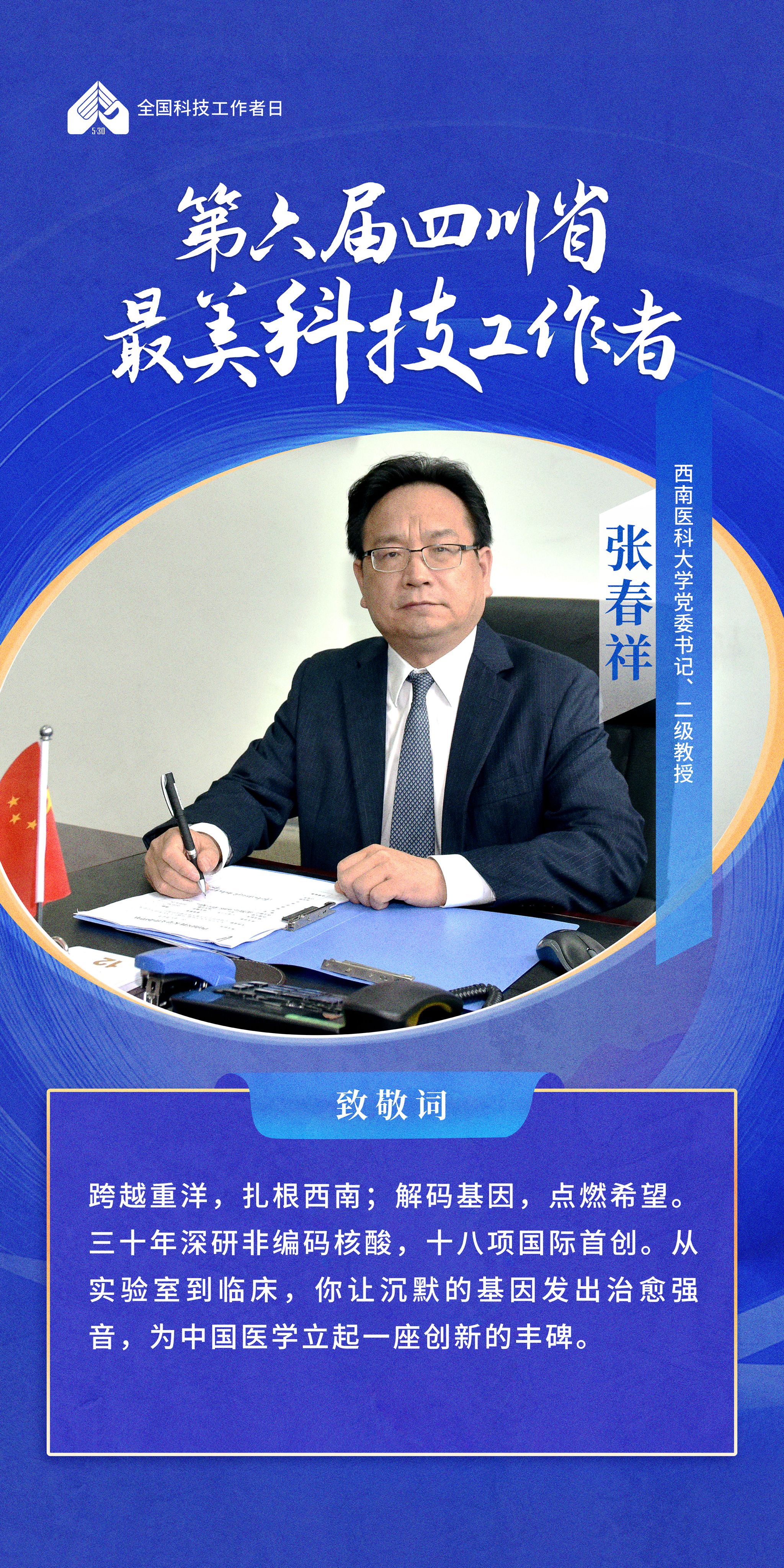 活动现场,第六届四川省“最美科技工作者”名单正式揭晓,kaiyun官网党委书记张春祥教授获此殊荣。