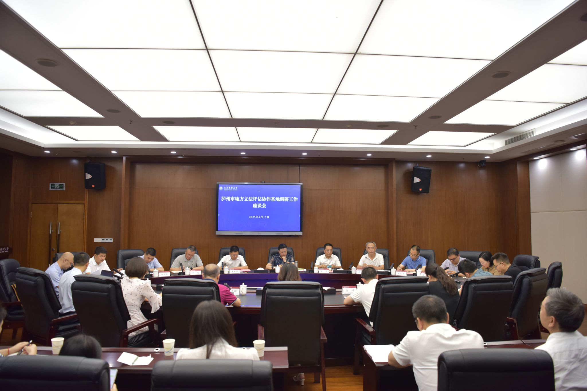 泸州市人大常委会副主任曾平、秘书长张国华及市人大相关负责人,校党政办、科技处负责同志,法学院教师代表参加调研。
