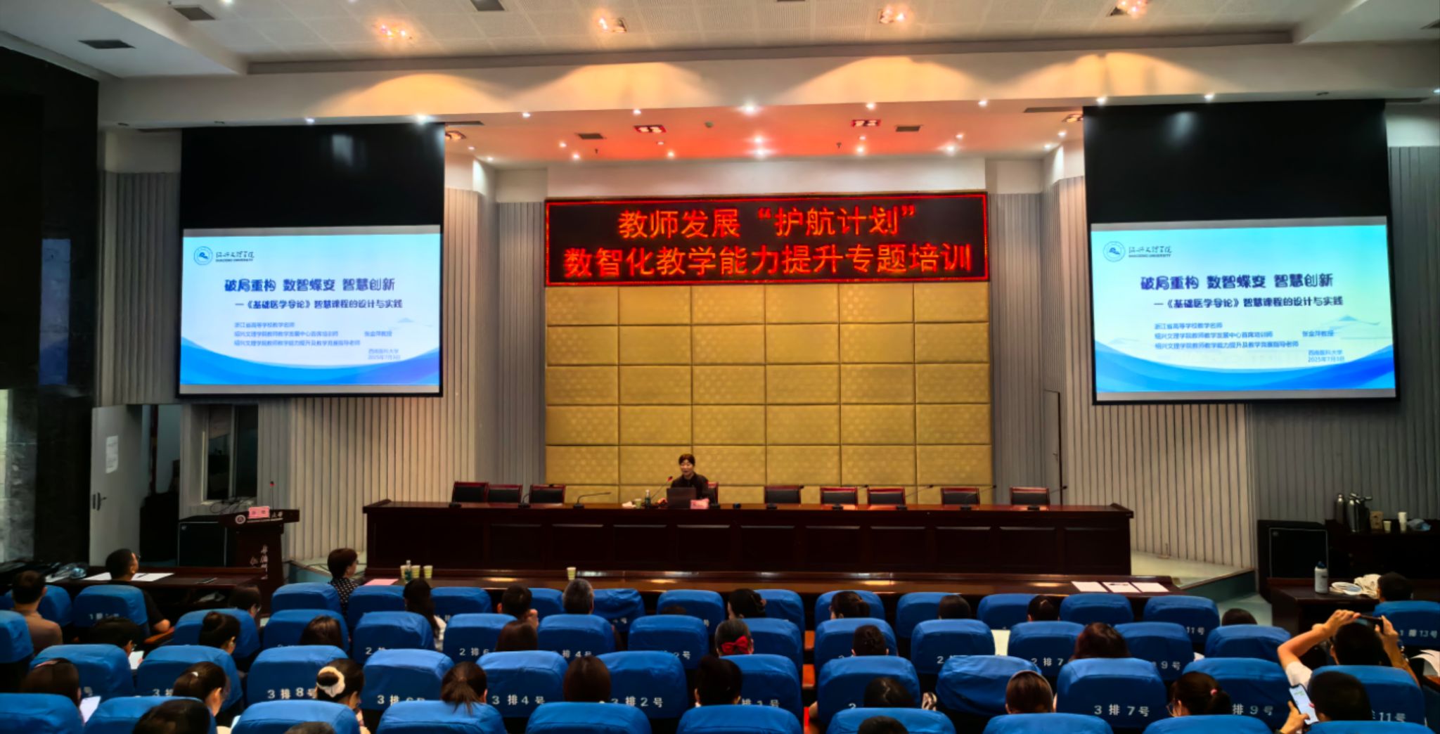 为深入推进教育教学数字化转型,提升教师智慧教学能力,7月3日,学校教育评价与教师发展中心启动教师发展“护航计划”,开展“教师数智化教学能力提升专题培训”。活动采用线上线下结合模式,200余名各院系教师代表现场参培,全校教师及基地医院线上观看直播。