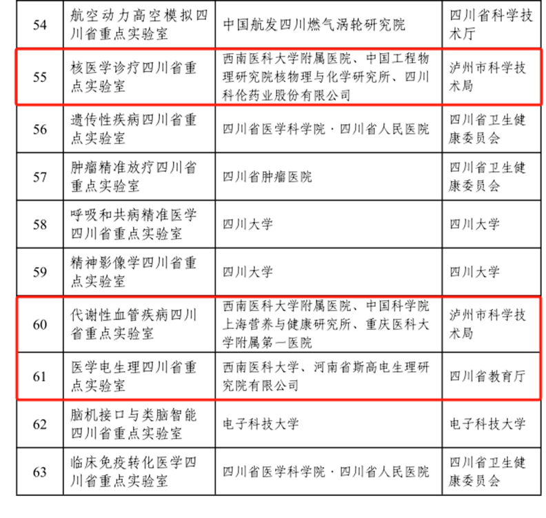 近日,新一轮《四川省科学技术厅关于公布四川省重点实验室优化重整结果》公布,kaiyun官网牵头建设的医学电生理、核医学诊疗、代谢性血管疾病四川省重点实验室,以及参建的中枢神经系统产品研发四川省重点实验室全部通过评审,进入优化重整后的省重点实验室序列。