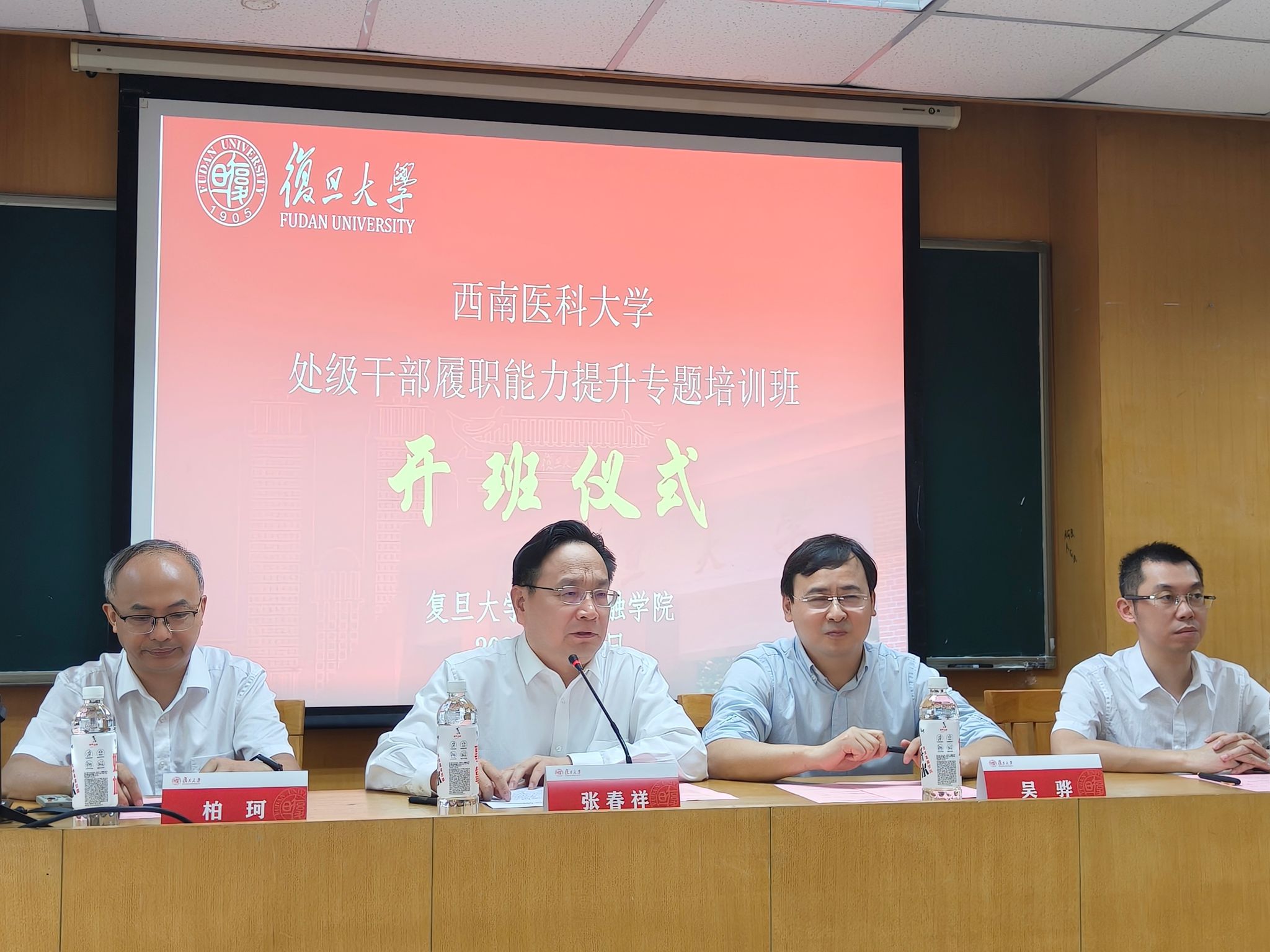 学校党委书记张春祥,党委常委、组织部部长柏珂,党政办公室·目标督查办公室·信访办公室主任娄坤以及复旦大学“双一流”建设办公室主任吴骅出席开班仪式。