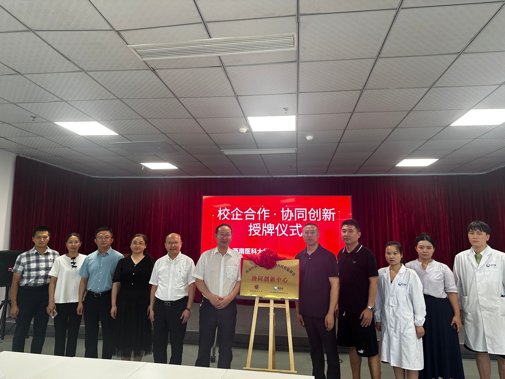 仪式上,聂敏海与杜湘共同为“口腔生物材料智能制造协同创新中心”揭牌。随后,双方围绕响应国家科技创新和发展新质生产力的号召、推动泸州市和kaiyun官方网站入口共建国家区域医药健康中心、深化校企优势互补与协同创新等议题展开座谈交流。杜湘表示,美舒哲义齿科技有限公司致力于口腔生物材料的研发和应用,协同创新中心的成立将为企业注入强大动力。企业希望与高校联合开展科研攻关,突破“卡脖子”技术;通过临床赋能优化诊疗体验;共建人才培养体系,培育复合型专业人才。