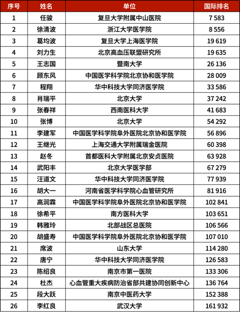 据统计公布的2025年榜单,中国共有12374位学者进入“终身科学影响力排行榜”,有31685位学者入选“2025年年度影响力榜单”。该榜单纳入了1960-2025年Scopus数据库中全球科学家中名列前2%的论文作者,来自中国大陆的心血管领域专家共26人。