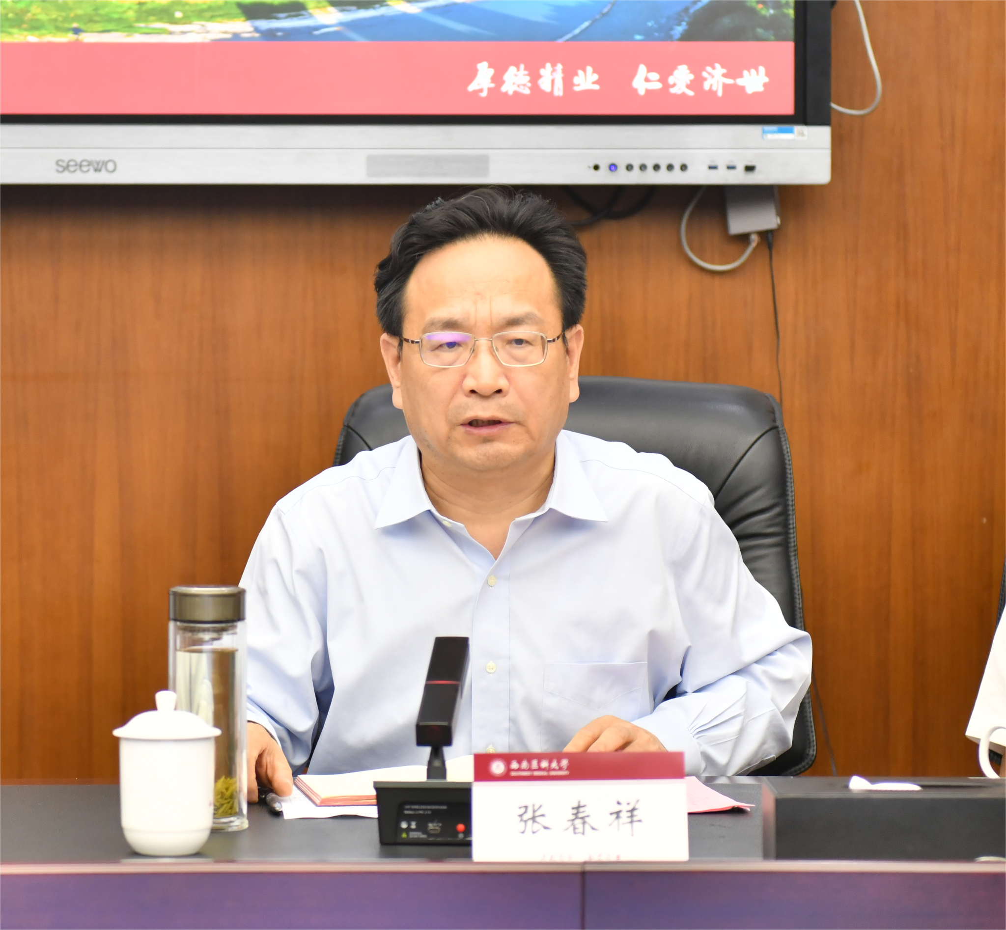 在认真听取全体与会人员发言后,张春祥对统战成员为学校改革创新发展作出的积极努力与重要贡献表示感谢,并针对大家提出的建议作出回应。他强调,广大统战成员要进一步凝聚思想合力、融入学校发展全局,始终与学校党委同心同德、同向同行。他指出,学校正处于全面实施“138”发展战略,持续深化创新改革,全力冲刺“十四五”规划目标,谋划“十五五”发展蓝图,奋力推进特色鲜明的西部高水平医科大学建设的关键阶段。他希望,全体统战成员要筑牢思想根基,强信心筑同心;要围绕中心任务,彰显统战担当;要加强自身建设,强基础提质效,共同谱写学校事业高质量发展新篇章!