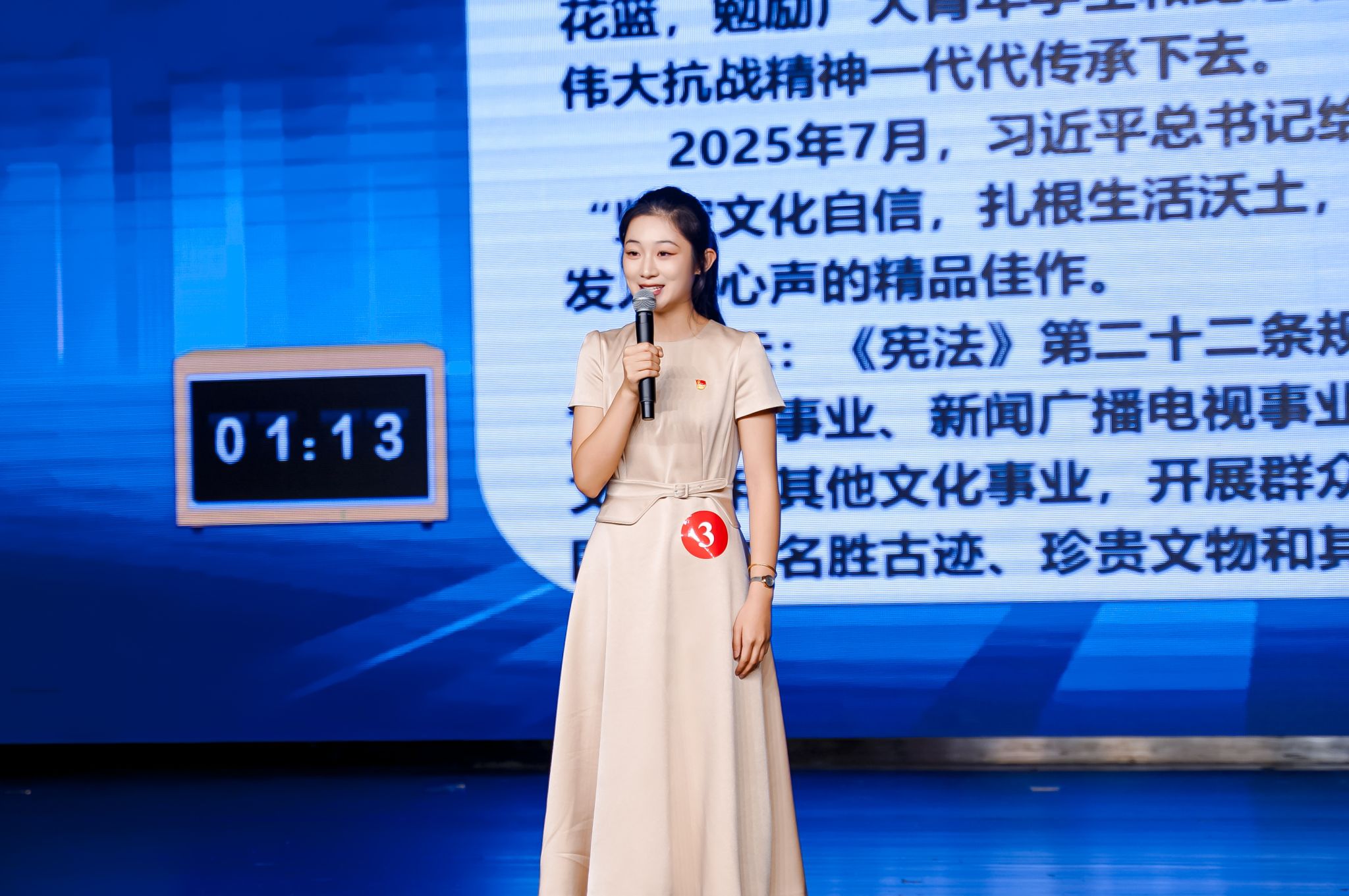 杨淏媞同学反复打磨稿件逻辑与感染力,搭配语气、肢体动作练习,通过模拟演讲适应现场节奏。