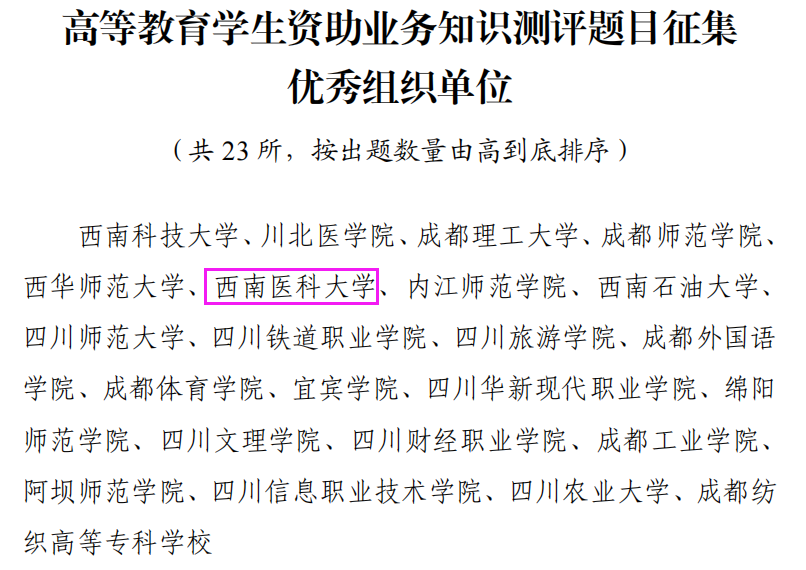 学校获四川省高等教育学生资助业务知识测评题目征集优秀组织单位