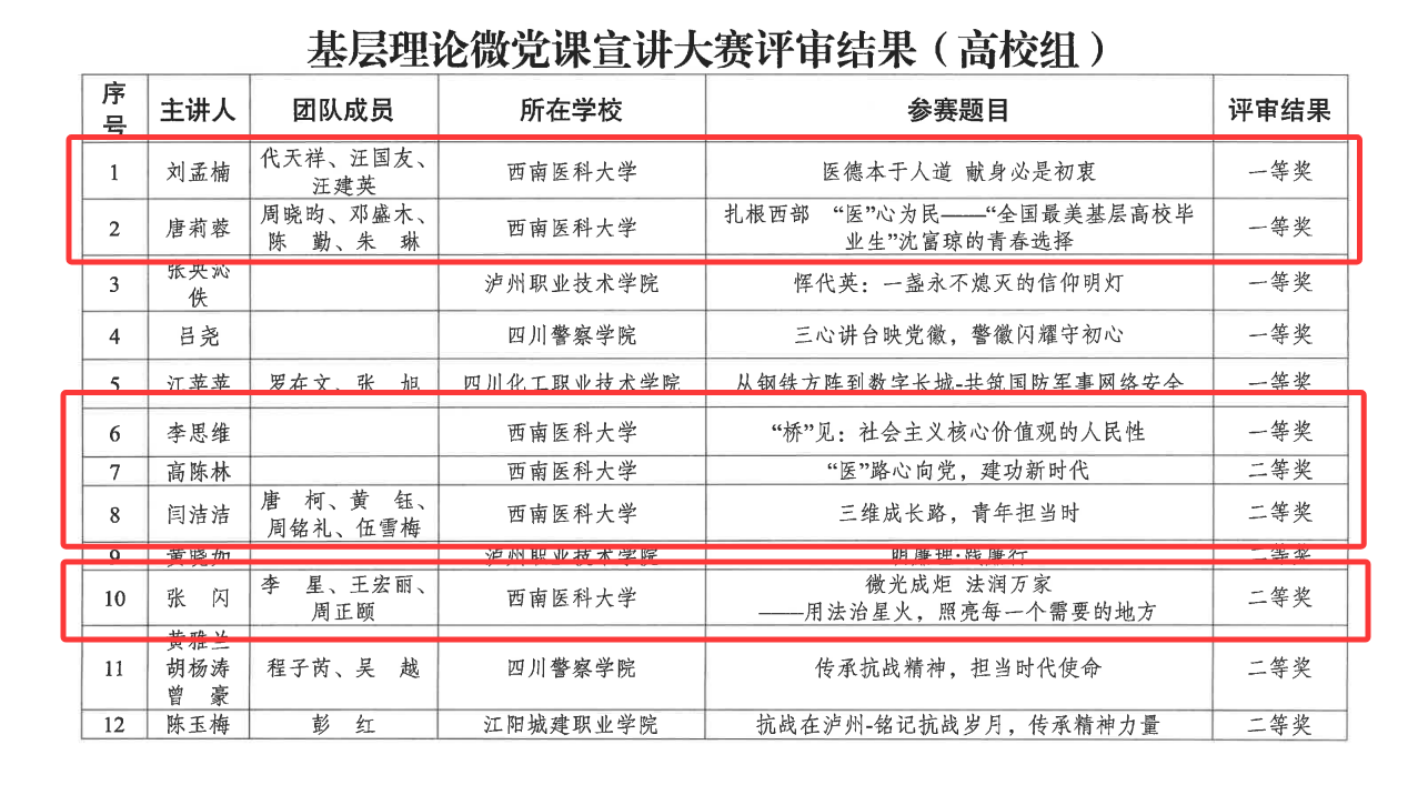 本次“酒城师说”基层理论微党课宣讲大赛旨在进一步落实立德树人根本任务,推进党的创新理论进校园、进课堂、进师生头脑,激励广大党员、干部真抓实干、奋勇向前。大赛评选出高校组一等奖6个、二等奖6个,kaiyun官网获奖数占高校组奖项总数50%,充分展现了西南医大人扎根教育医疗行业,奋发有为的精神面貌。下一步,学校党委将进一步创新党员教育载体,依托“微党课”“青年党员说”等,以小故事讲活大道理,让小讲台绽放大精彩,让党课走更走,教育引导广大党员满怀忠诚感恩之心、激发实干担当之志,推进党员教育走深走实、见行见效。