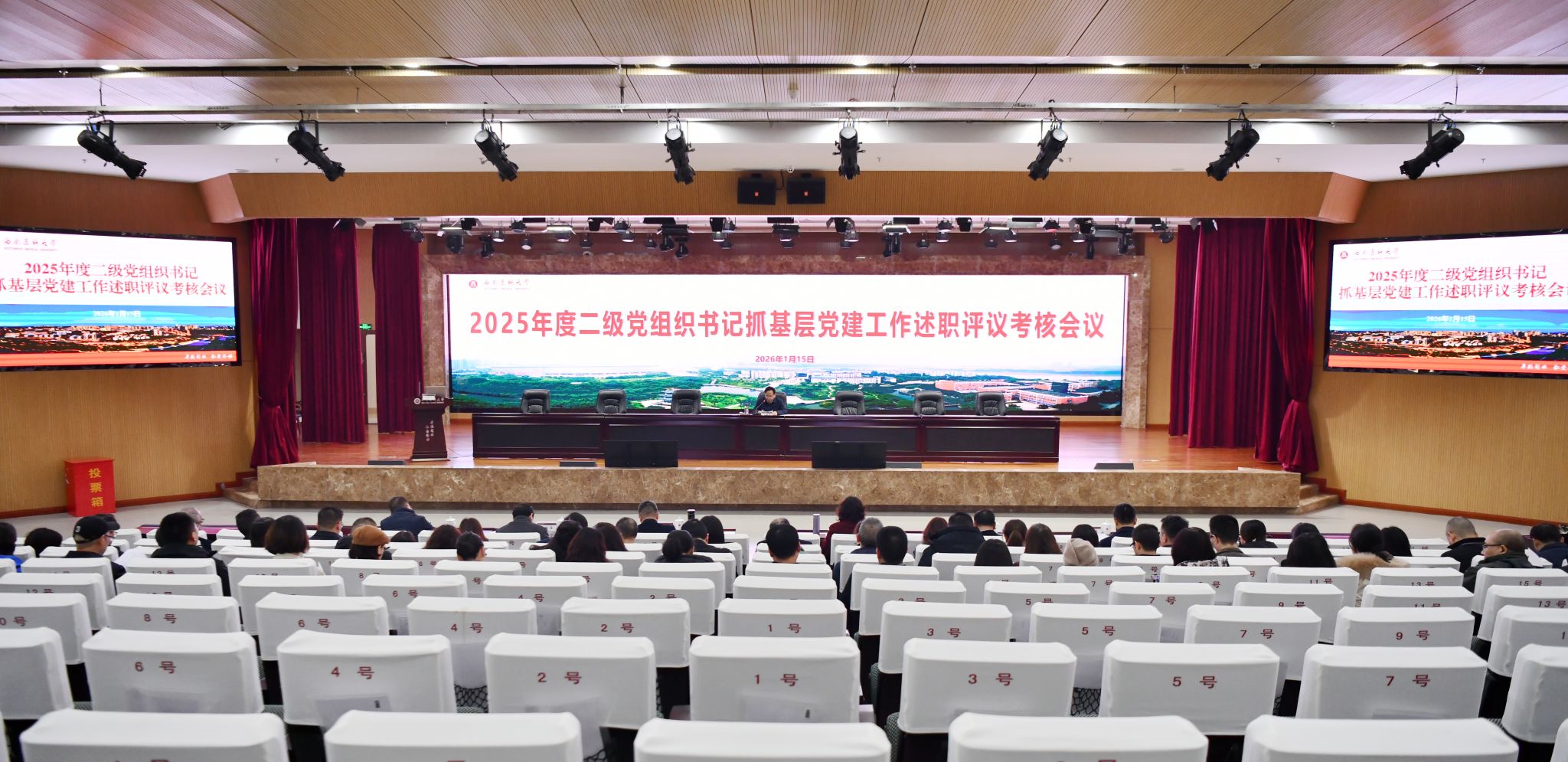115日,2025年度基层党组织书记抓基层党建工作述职评议考核会议在城北校区第一学术报告厅召开。校党委书记张春祥主持会议并讲话,全体在校校领导、校“两委”委员,二级党组织书记、职能部门负责人、附属第四医院(附属天府医院)党委书记、五院系党总支书记参加会议。