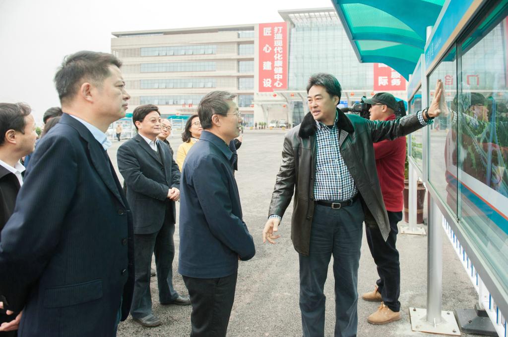 调研组一行实地考察了附属医院康健中心的整体规划及布局,召开座谈会。会上,廖斌介绍了学校的基本情况,附属医院院长杜一华就康健中心院区建设情况医院的管理模式、未来发展方向等作了汇报