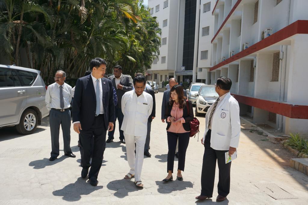 代表团先后访问了孟加拉国BARIND医学院、ANWER KHAN现代医学院,印度APPOLLO GLENEAGLE医院、M·R·S医学院、SRI DEVARAJ URS 大学及其附属医院、尼泊尔TRIBHUVAN大学TUTH医学院等七个医学院校和医疗机构,与各大学的校长、医院的负责人、教师和医生进行了座谈,了解了孟加拉国、印度和尼泊尔的医学教育现状和医疗情况;拜访了尼泊尔国家医学会,并与该学会负责海外医学留学的官员Dr.Dilip Sharma博士进行了会谈;与孟加拉国BARIND医学院、ANWER KHAN现代医学院签订了友好合作备忘录,双方拟在人才培养、教育教学和医疗技术方面进一步开展合作。