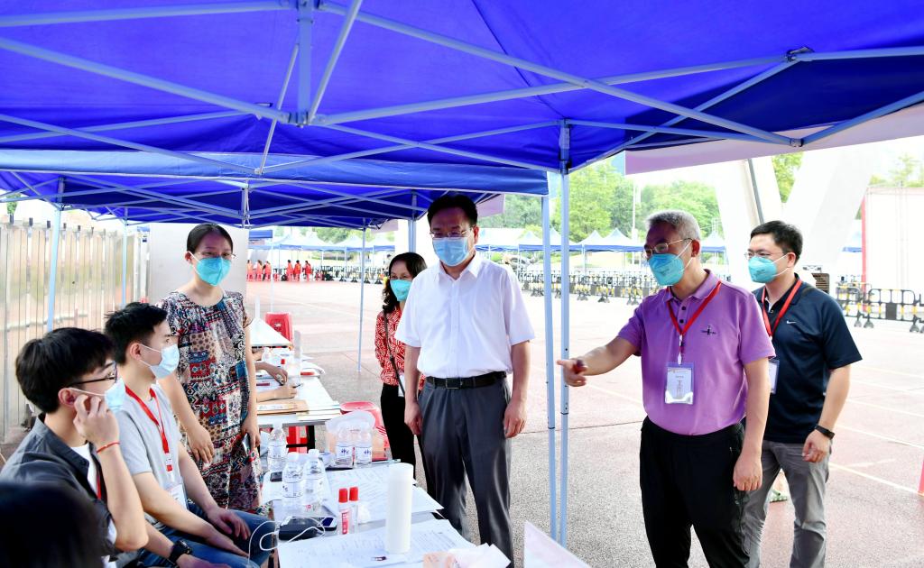 98日下午,主持行政全面工作副校长张春祥来到报到点,现场察看报到工作开展情况。研究生院院长范贤明、副院长朱小平介绍了报到工作具体安排情况。张春祥仔细听取了汇报,对报到前期工作给予了充分肯定,并强调一定要按照工作方案要求,把握每个环节,落实层层责任,确保报到工作不出差错,保障大家健康安全。学生报到期间,各二级学院党政主要领导也到现场察看了报到工作,向学生了解了相关情况。