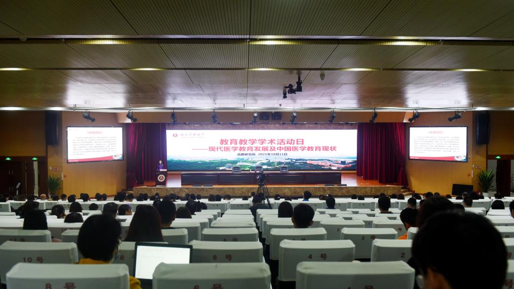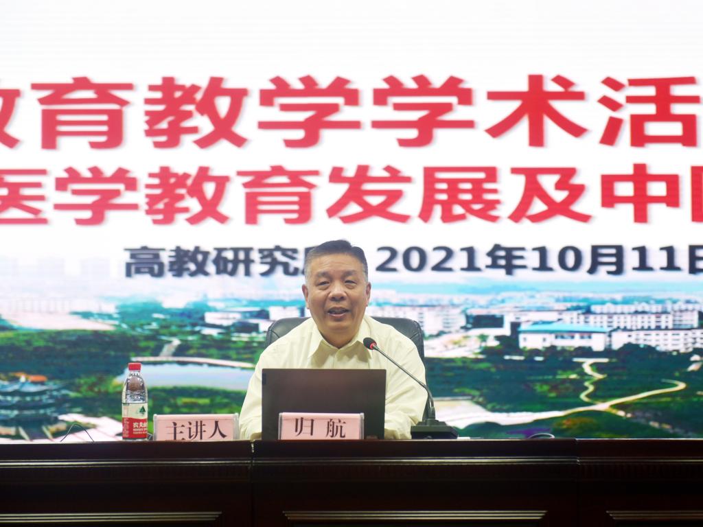 为常态化开展教育教学学术活动,提高kaiyun官网医学教育整体发展水平,加快推进医学教育教学改革与研究,10月11日上午,学校在城北校区第一学术报告厅组织开展10月“教育教学学术活动日”活动,邀请中国医学科学院北京协和医学院“新型八年制医学教育改革办公室”主任、“医学教育研究中心”副主任归航教授作“现代医学教育发展与中国医学教育现状”专题讲座。此次讲座以“线上直播+线下学习”相结合的形式进行。学校教务处·高教研究所、学生工作部、发展规划处等部门负责人和相关人员,各院系负责人、分管教学领导、教务科科长,以及各教学基地相关人员和院系师生代表等300余人参加,讲座由学校党委常委、副校长何涛主持。