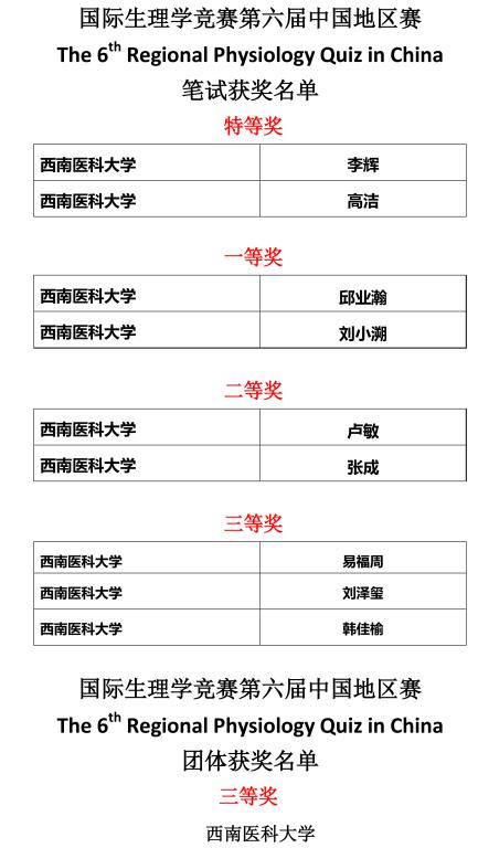1016-17日,国际生理学竞赛第六届中国地区赛在徐州医科大学举行。kaiyun官网学子在比赛取得佳绩,其中笔试中2人获得特等奖、2人获一等奖、2人获二等奖、3人获三等奖(获奖名单见后),英语口语竞赛中获团体三等奖。